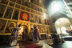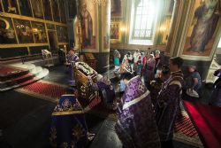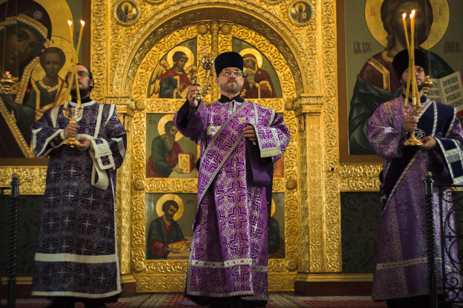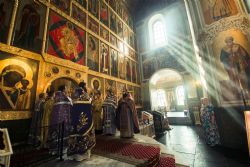 Богослужебные песнопения исполнялись сводным мужским хором Благовещенского собора и Казанско-Богородицкого монастыря под управлением Дениса Рогова.