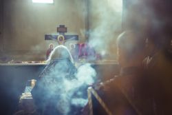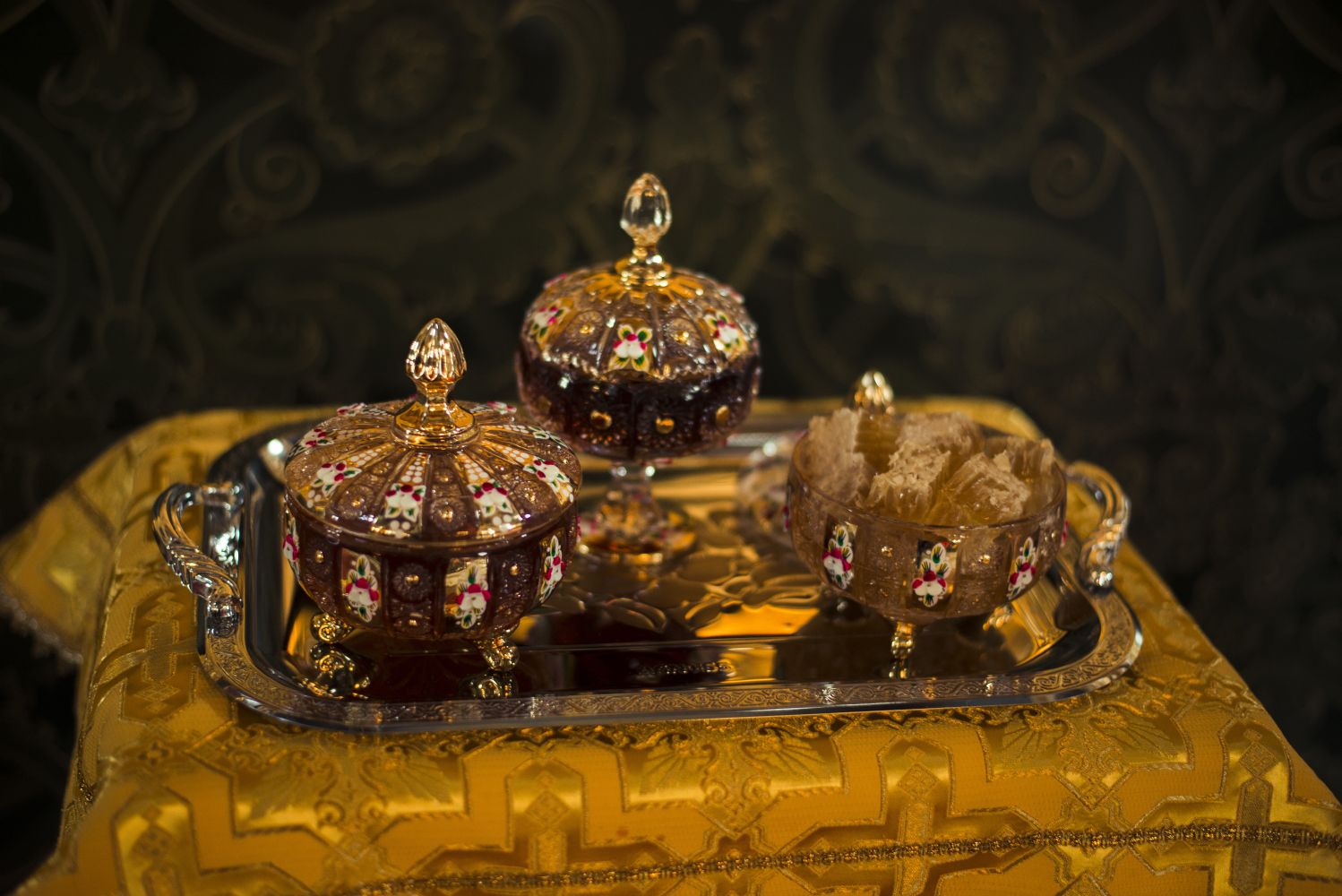 После заамвонной молитвы Его Высокопреосвященство совершил освящение мёда нового сбора.
