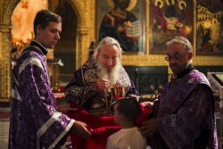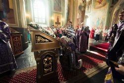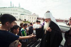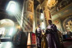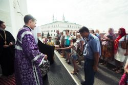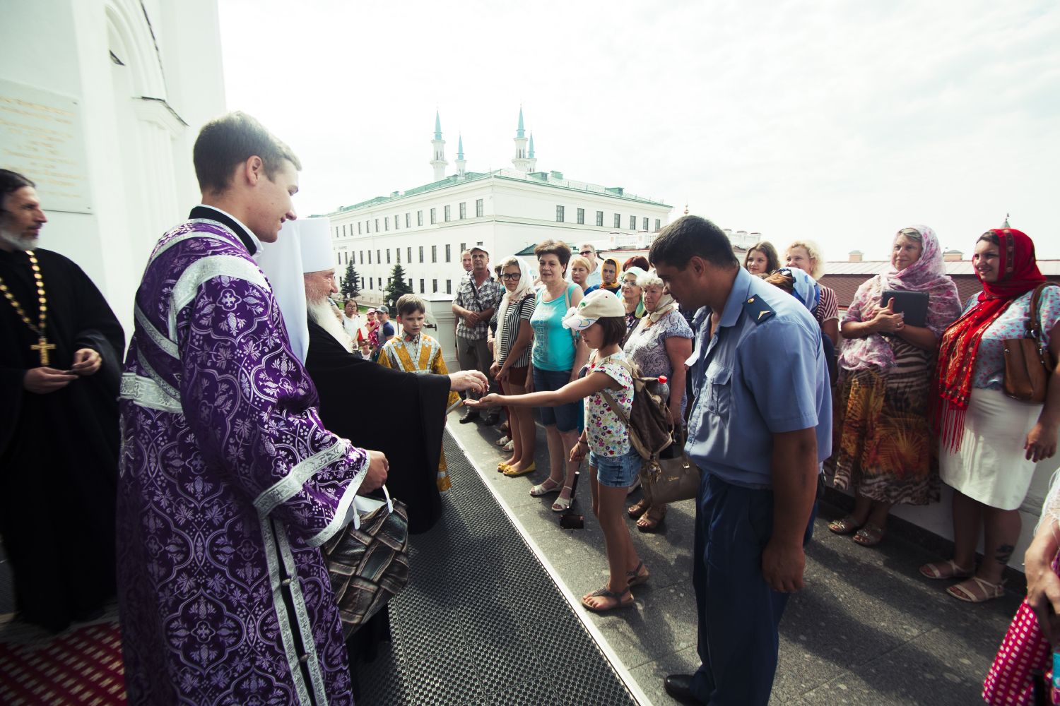 14 августа 2016 года, в Неделю 8-ю по Пятидесятнице, праздник Происхождения Честных Древ Креста Господня, митрополит Казанский и Татарстанский Феофан совершил Божественную литургию в Благовещенском соборе Казанского кремля.