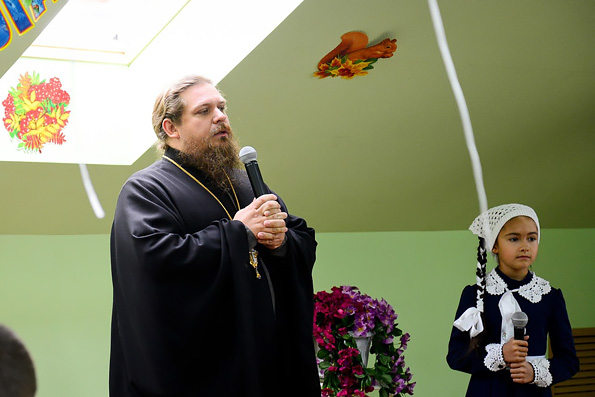 Следующим шагом к учебному процессу стала торжественная линейка и праздничный концерт. Последние приготовления, взволнованные лица ребят и родителей, повторения будущих номеров и вот оно — долгожданное начало праздника. С приветственным обращением выступил директор православной гимназии протоиерей Алексей Чубаков.