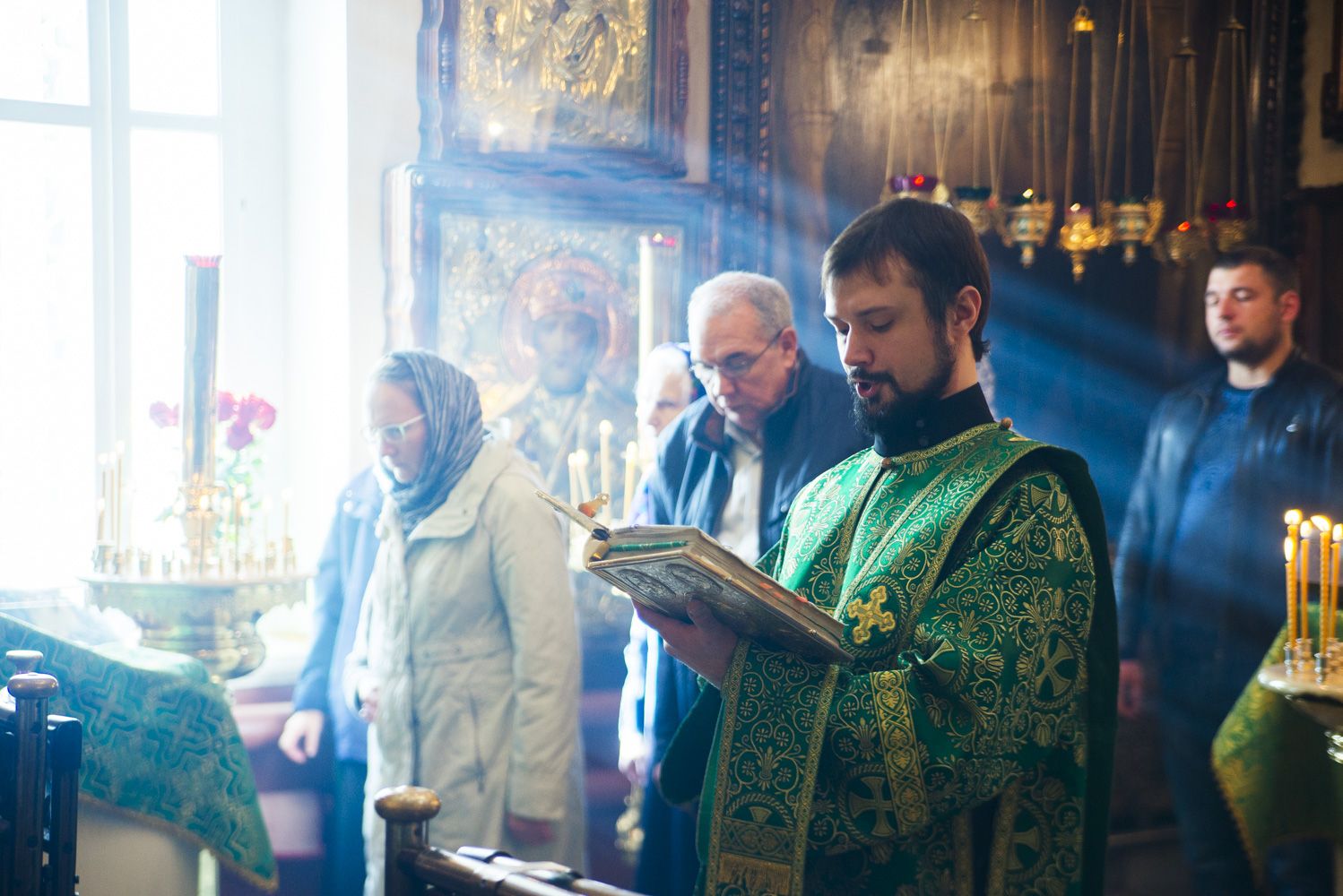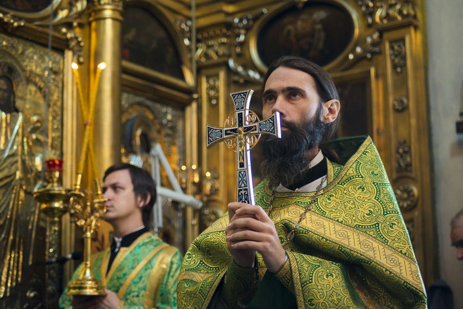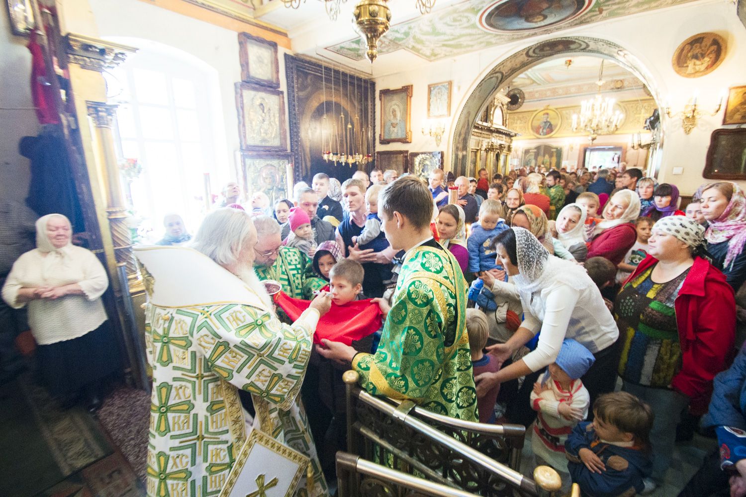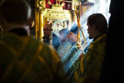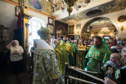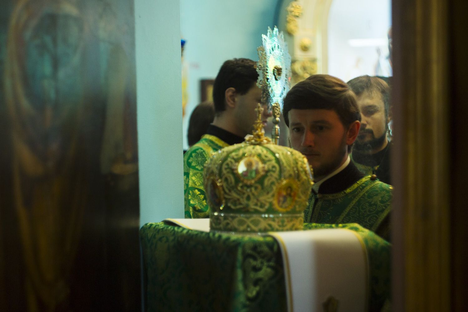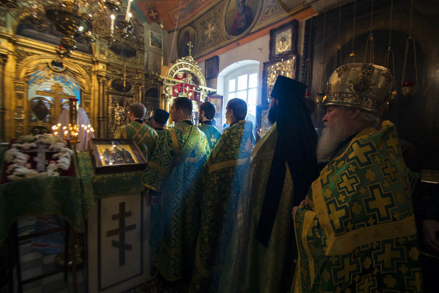 По заамвонной молитве духовенством было пропето славление Животворящему Кресту Господню и святым князьям — небесным покровителям храма.