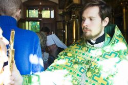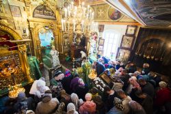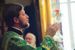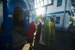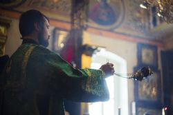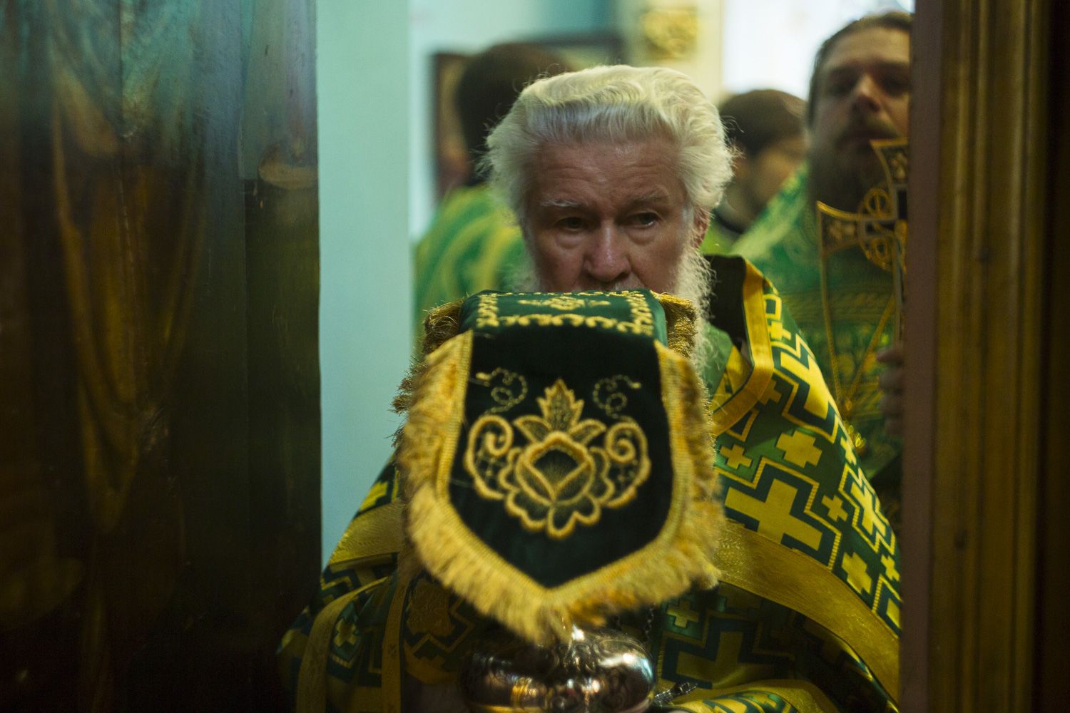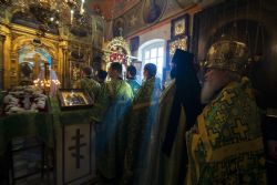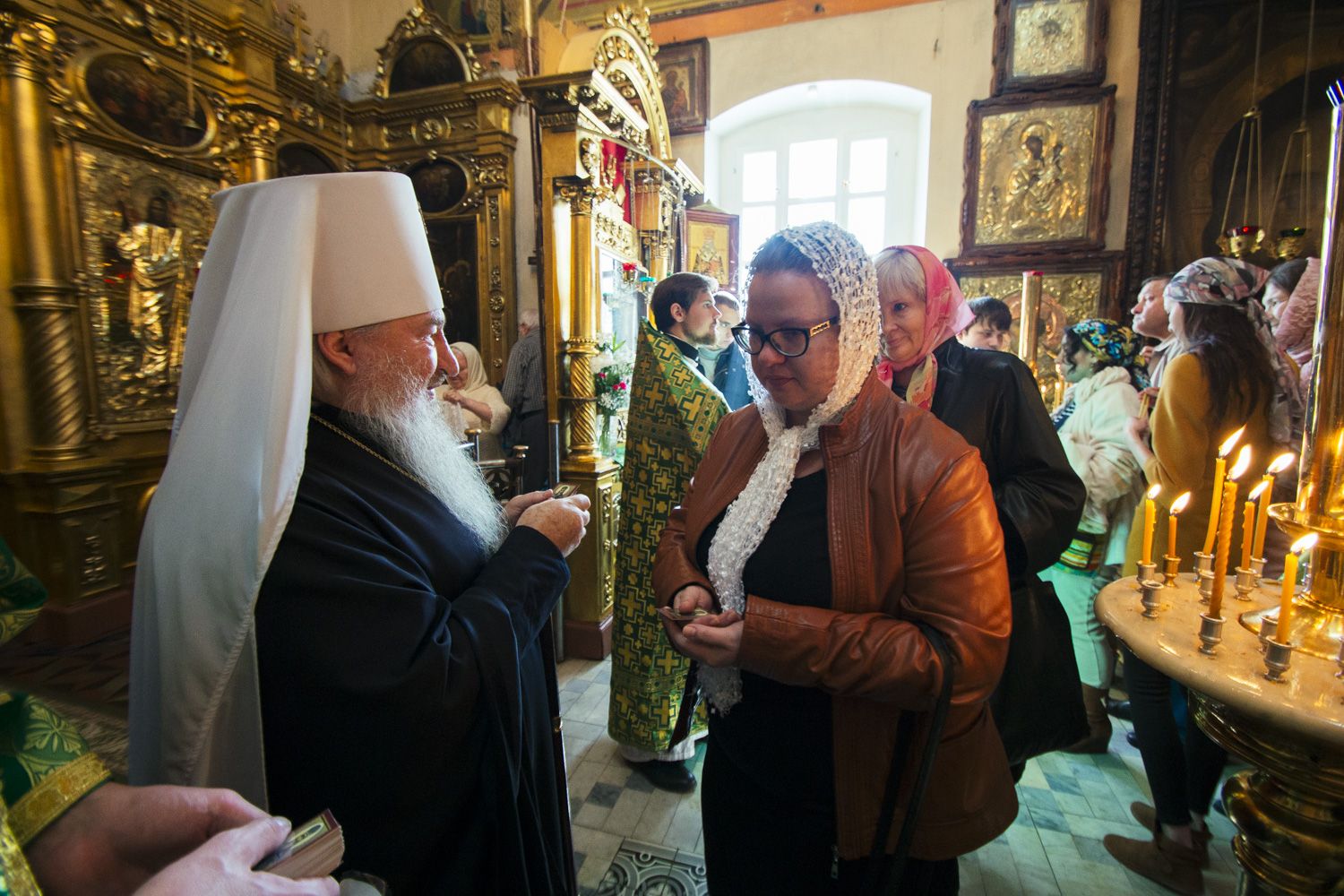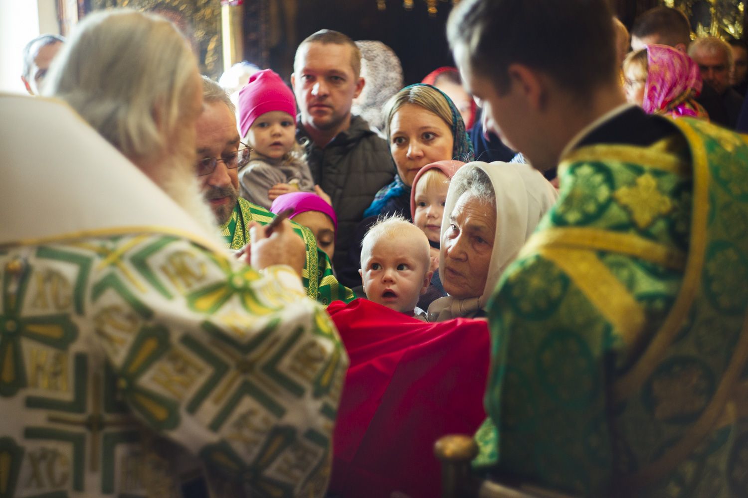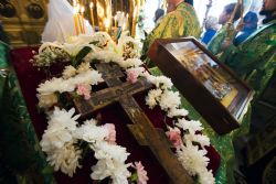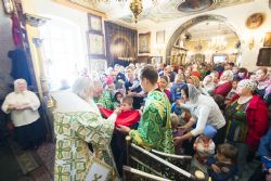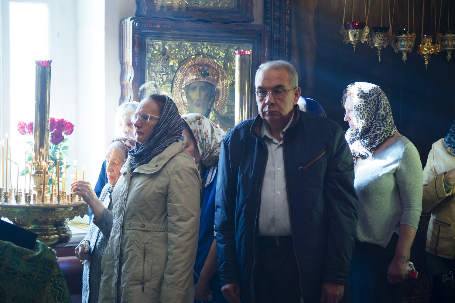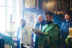 По заамвонной молитве духовенством было пропето славление Животворящему Кресту Господню и святым князьям — небесным покровителям храма.