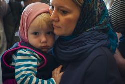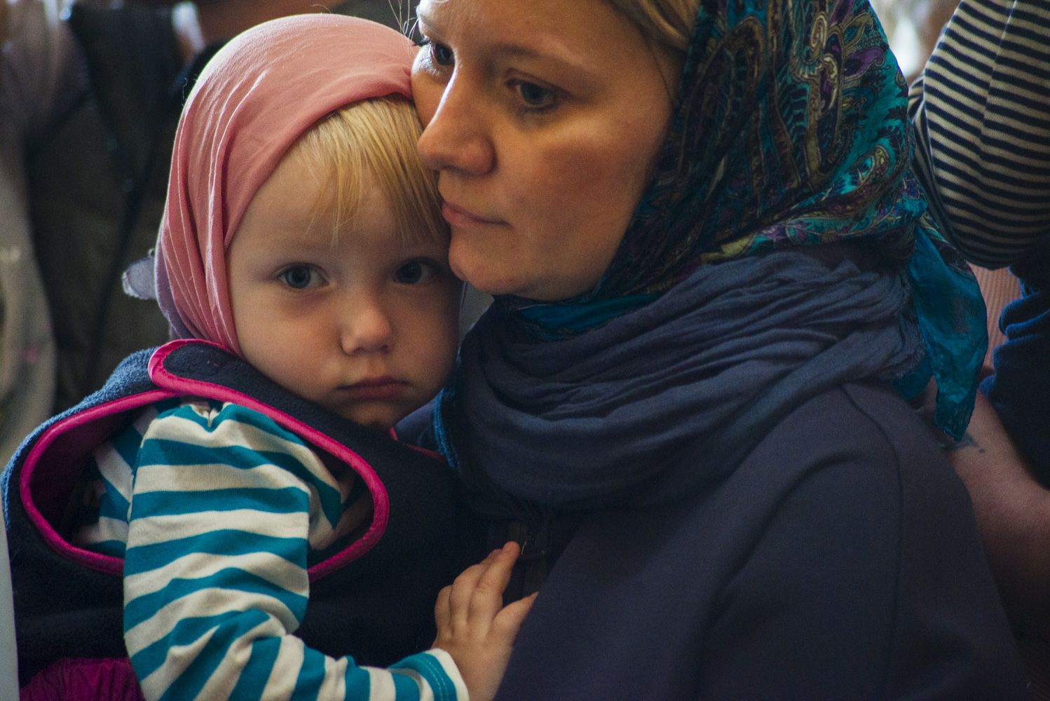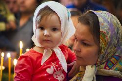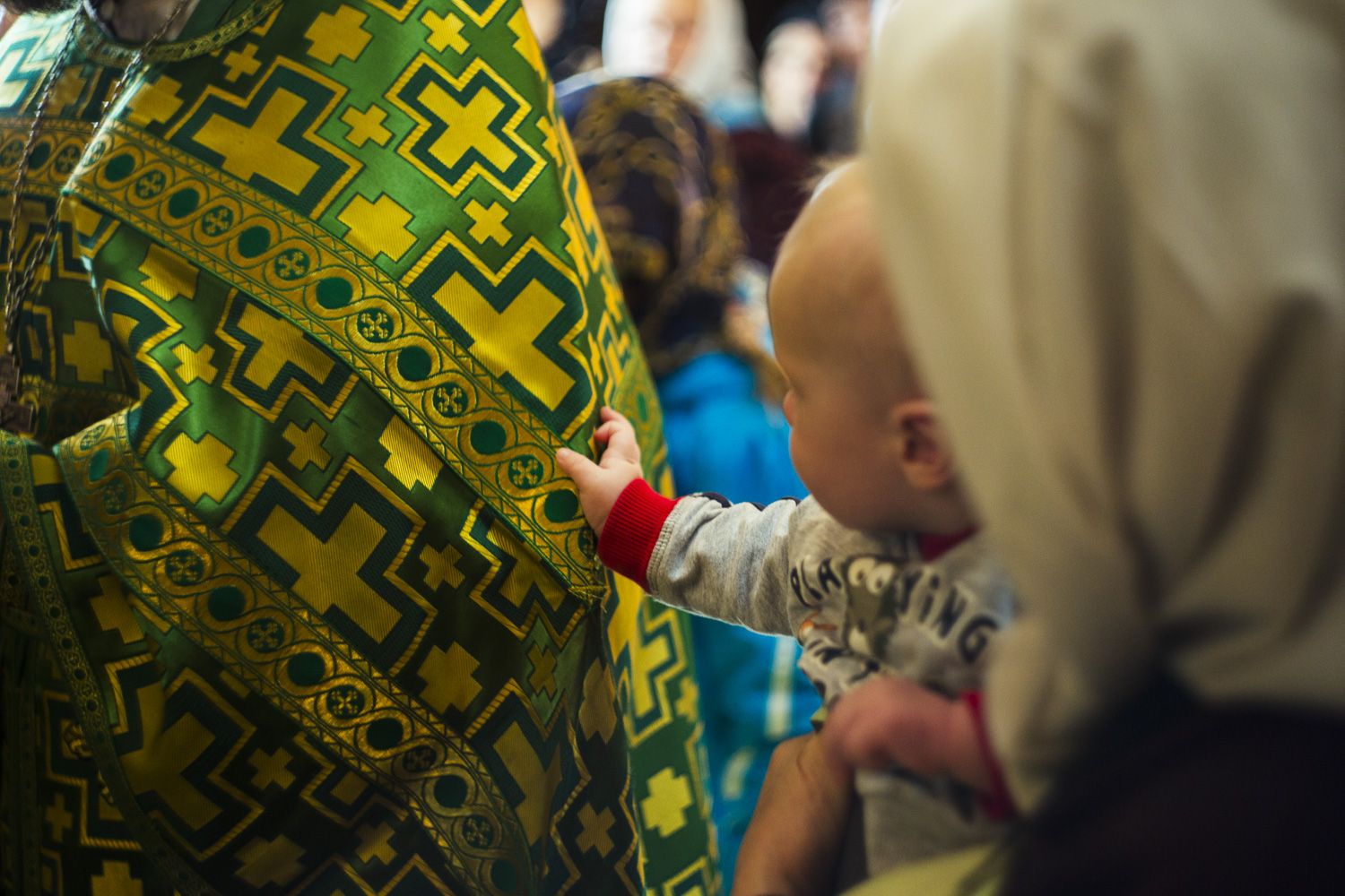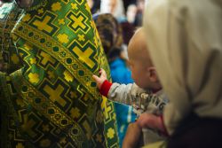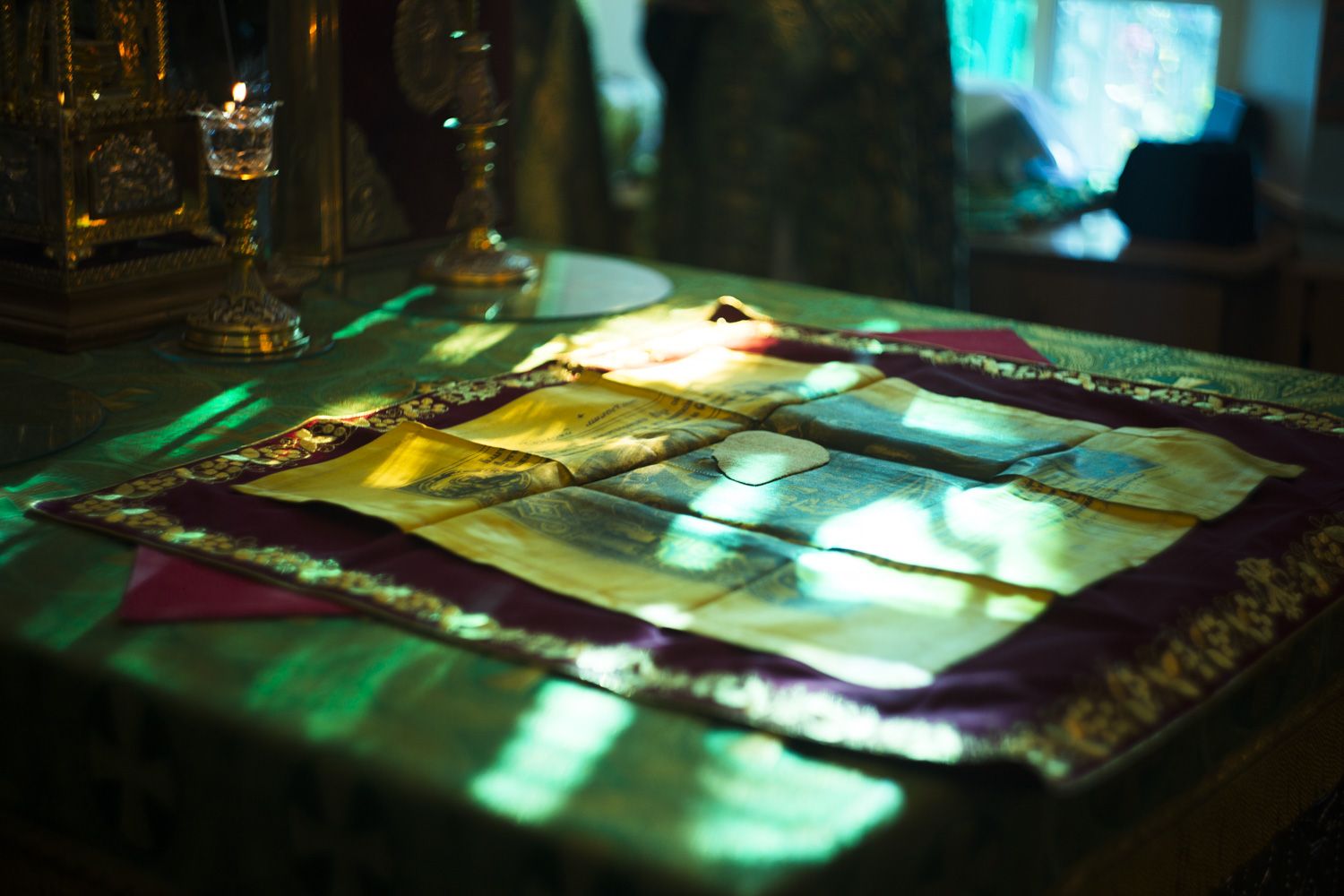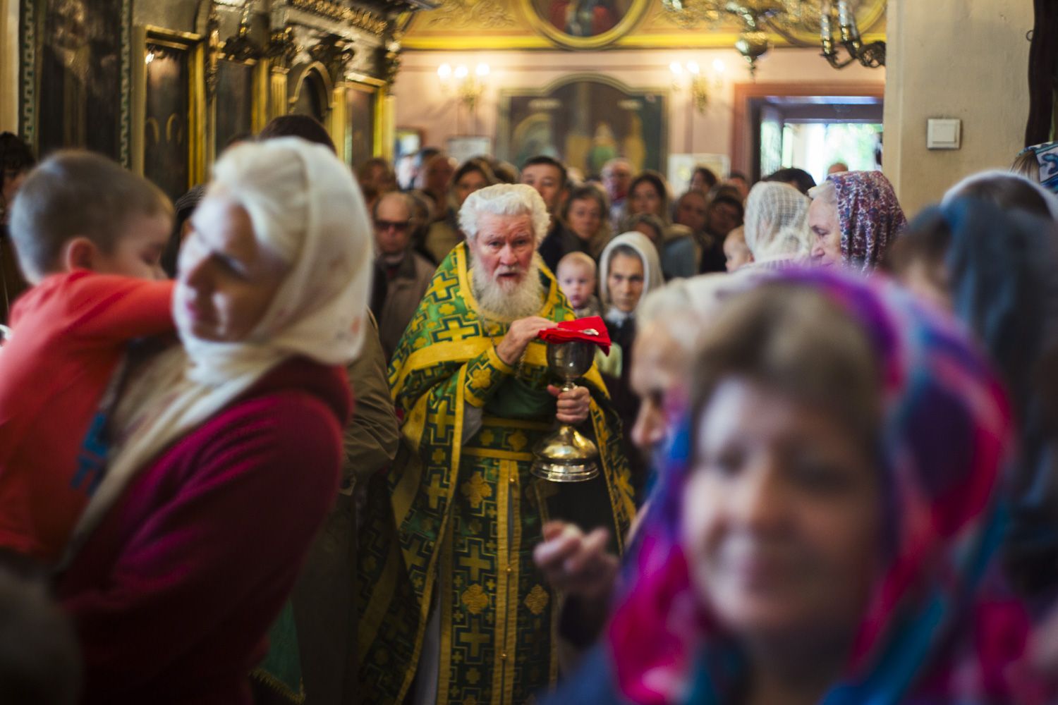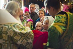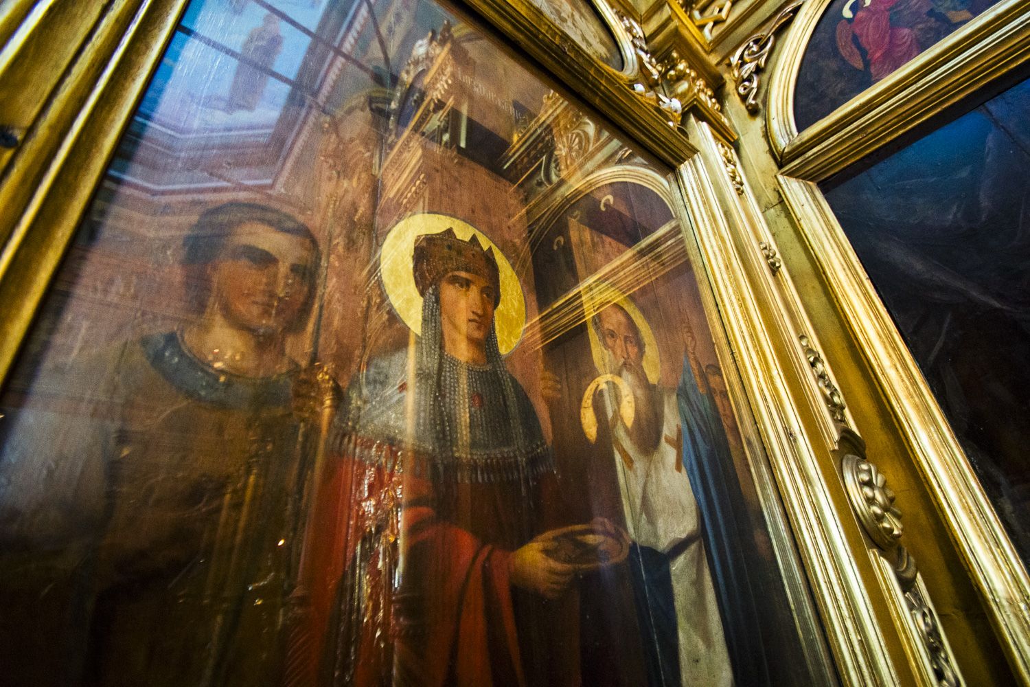 По заамвонной молитве духовенством было пропето славление Животворящему Кресту Господню и святым князьям — небесным покровителям храма.