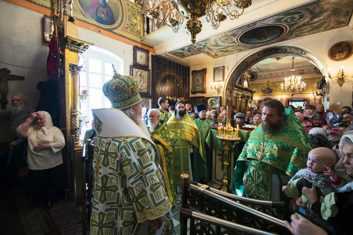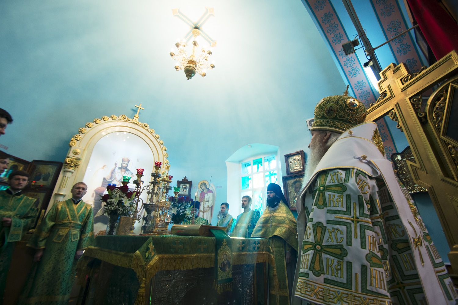 Его Высокопреосвященству сослужили почетный настоятель церкви Ярославских чудотворцев протоиерей Виталий Марфушкин, настоятель прихода и благочинный I округа града Казани протоиерей Алексий Чубаков, настоятель Свято-Введенского Кизического мужского монастыря города Казани игумен Пимен (Ивентьев), клирики прихода.