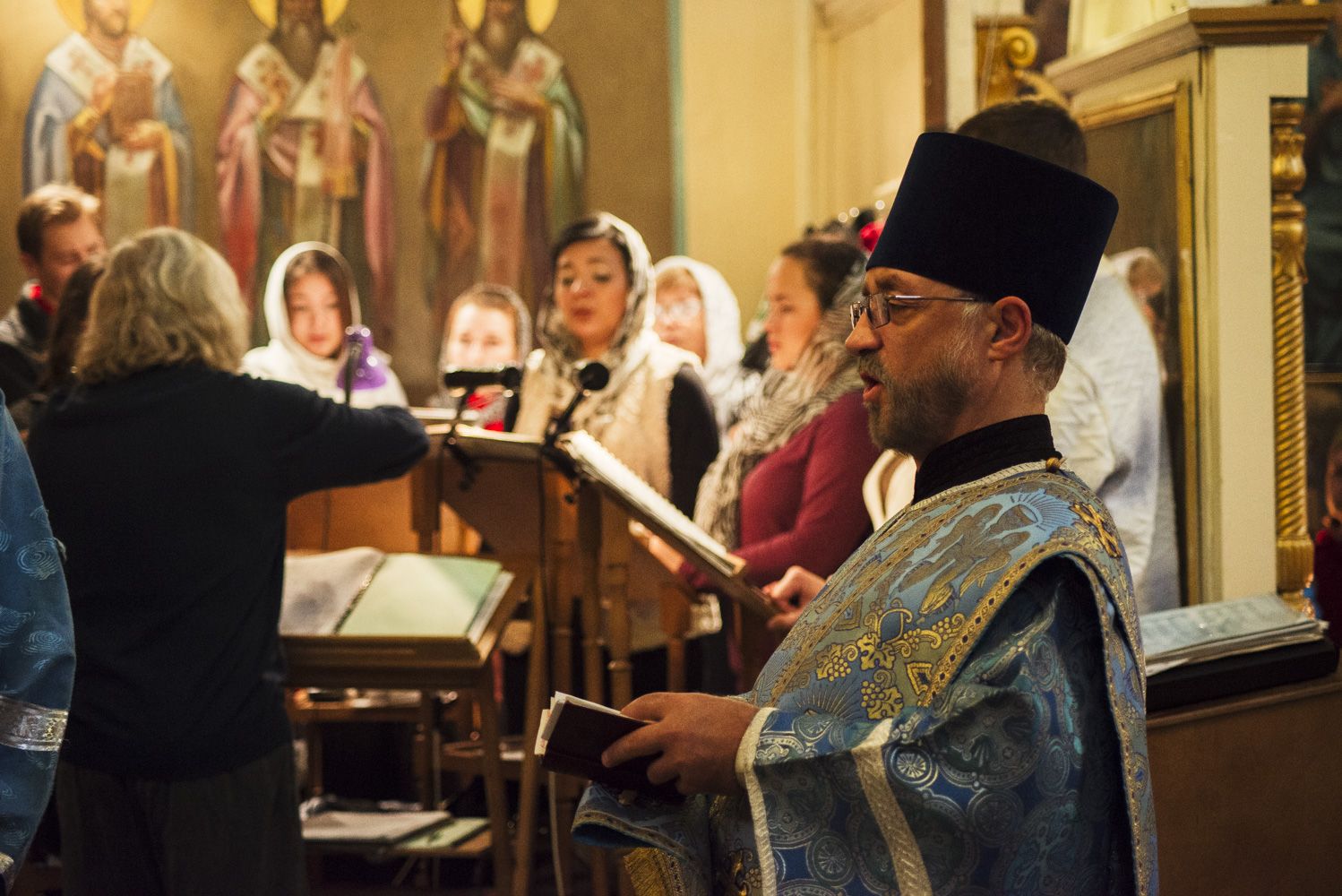 Песнопения Литургии исполнялись смешанным хором Никольского собора под управлением Николая Беляева.