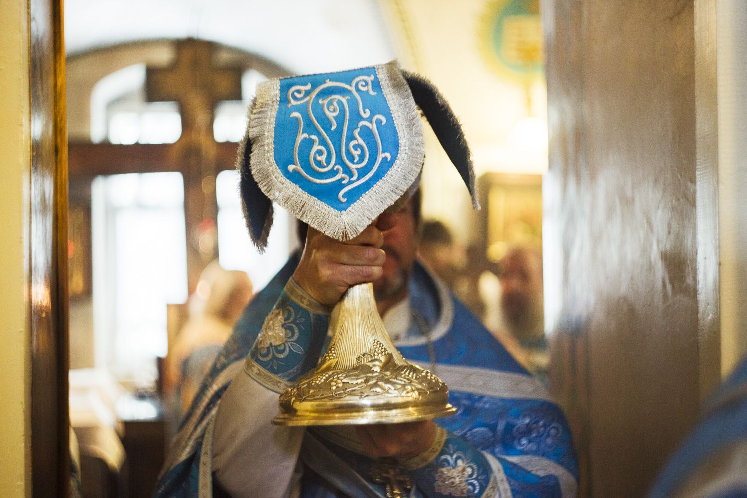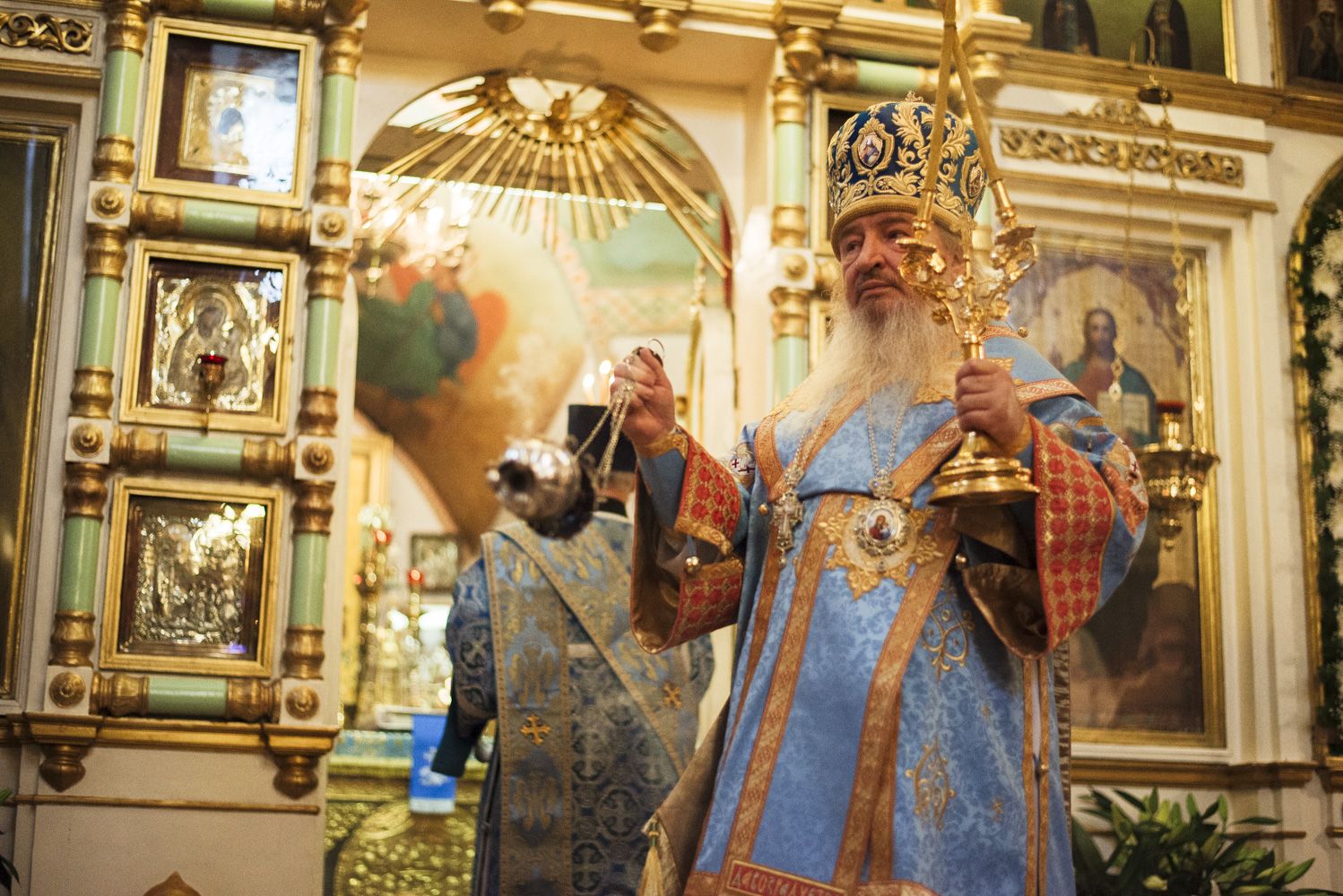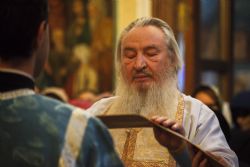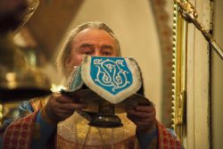 Владыка Феофан поздравил собравшихся с престольным праздником. Также Его Высокопреосвященство выразил благодарность настоятелю собора и всем потрудившимся в деле реставрации интерьера Покровского храма.