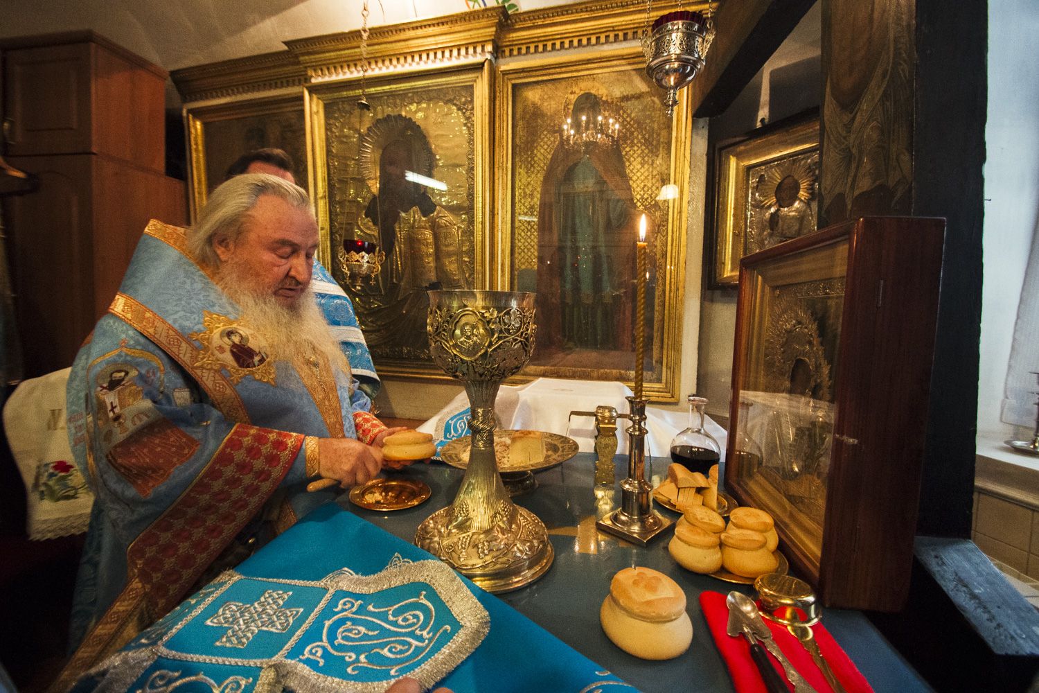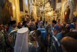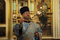 После заамвонной молитвы перед праздничной иконой духовенство пропело славление Божией Матери.