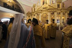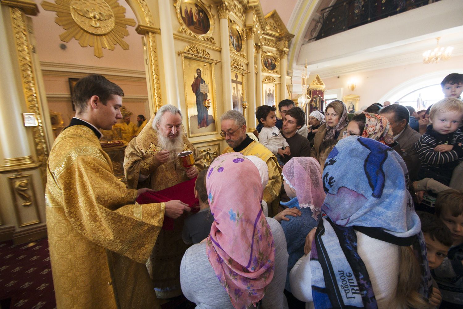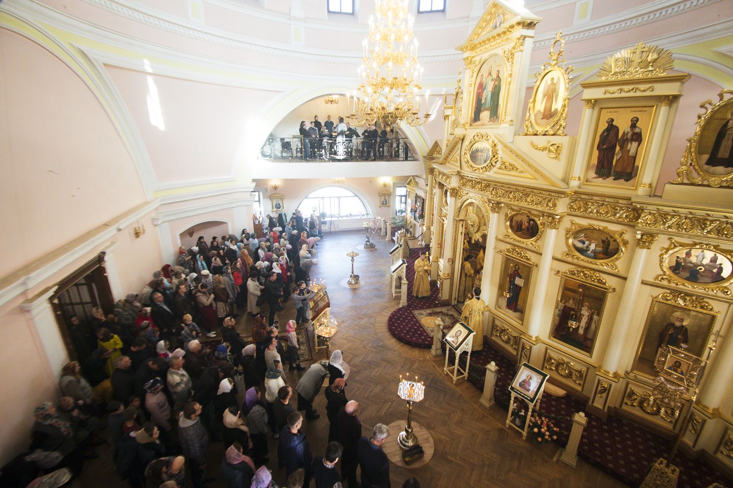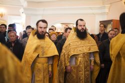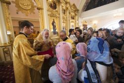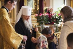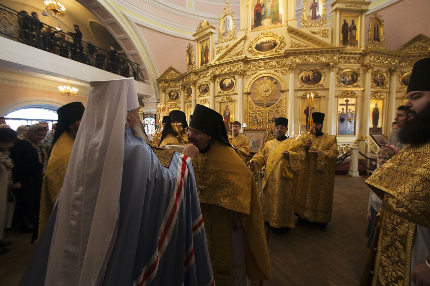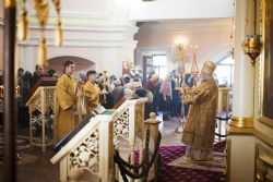 За Литургией Его Высокопреосвященству сослужил наместник Казанско-Богородицкого монастыря игумен Марк (Виленский) с братией обители. Богослужебные песнопения исполнялись двумя монастырскими хорами: мужским под управлением Дениса Рогова и смешанным под управлением монахини Амвросии (Кочережкиной).