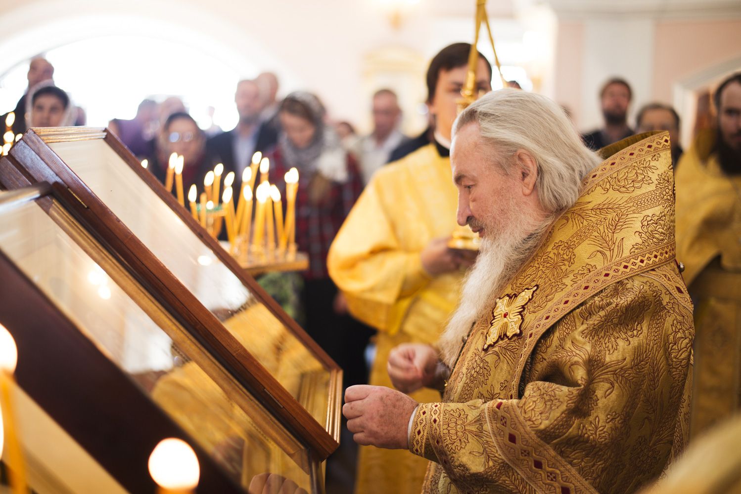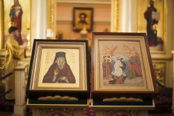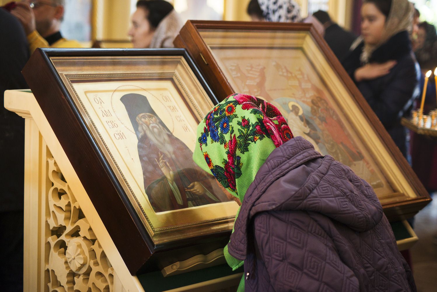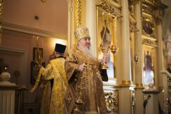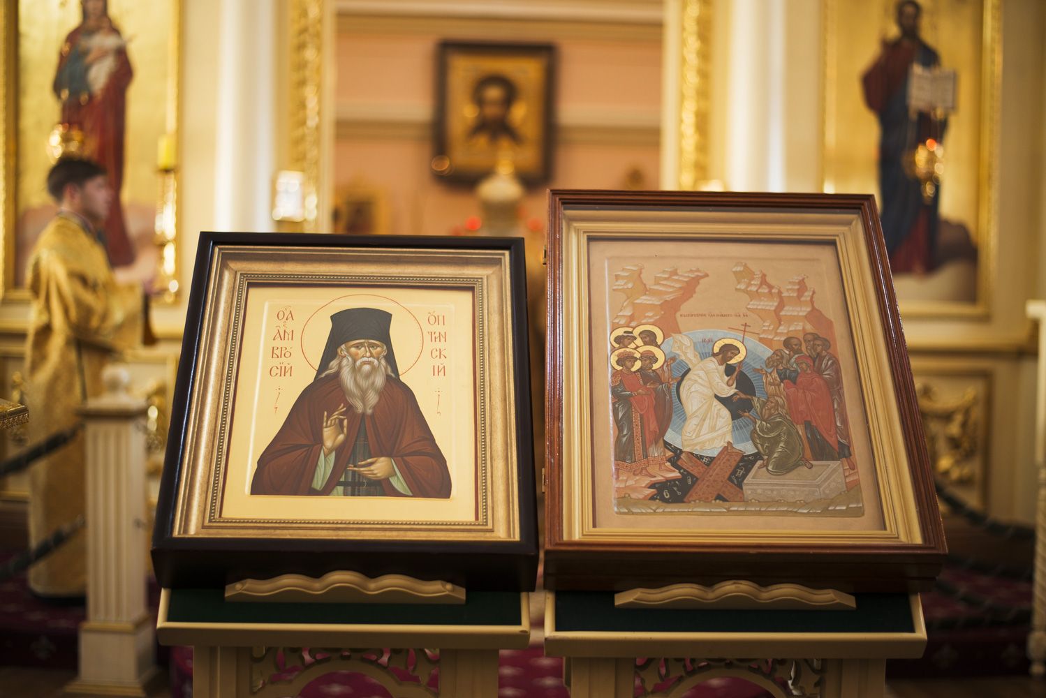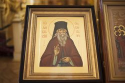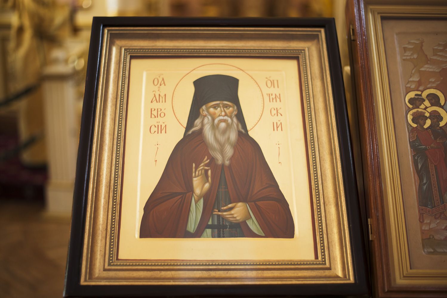 Завершая воскресное богослужение, правящий архиерей прочитал молитву преподобному Амвросию Оптинскому, чья память празднуется в этот день. Священнослужители пропели славление угоднику Божию.