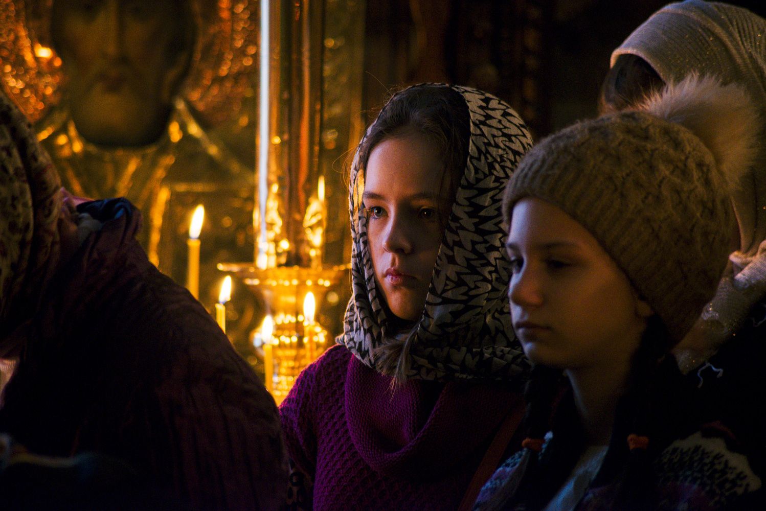 Богослужение возглавили почетный настоятель храма протоиерей Виталий Марфушкин. Ему сослужили наместник Казанско-Богородицкого мужского монастыря игумен Марк (Виленский), клирик прихода иерей Глеб Кривошеин и клирик Духосошественского храма диакон Димитрий Вивчар.