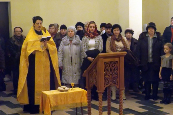 По окончании службы настоятель храма поздравил присутствующих с Рождеством: «Прихожане, живущие неподалеку, видят, как быстро меняется облик строящегося церковного здания. Теперь храм наш будет открыт каждый день с восьми утра до семи вечера. Все желающие смогут здесь помолиться, поставить свечку и укрепиться духовно в вере и добрых устремлениях. Давайте совместно работать над организацией работы нашего прихода!»