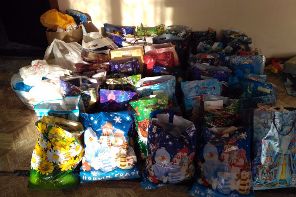 Ребята показали небольшой концерт, после чего вручили постояльцам интерната новогодние и рождественские подарки, сбор которых проходил по благословению митрополита Феофана.
