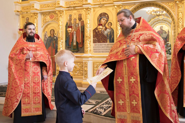 Свои грамоты получили и воспитанники «Школы алтарников», которая начала свою работу в стенах гимназического Духосошественского храма — всего в этом учебном году в школе алтарников обучалось 15 человек.