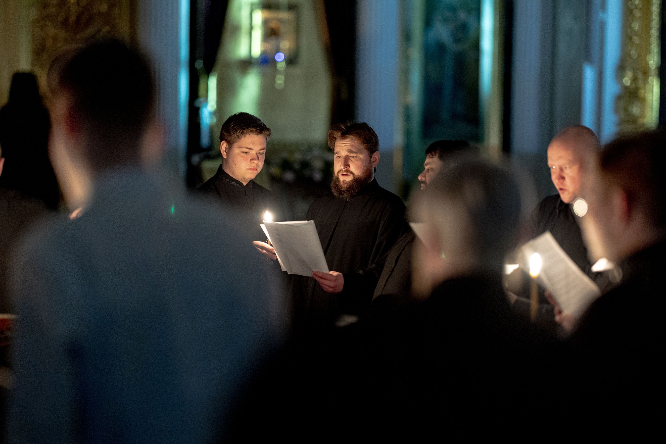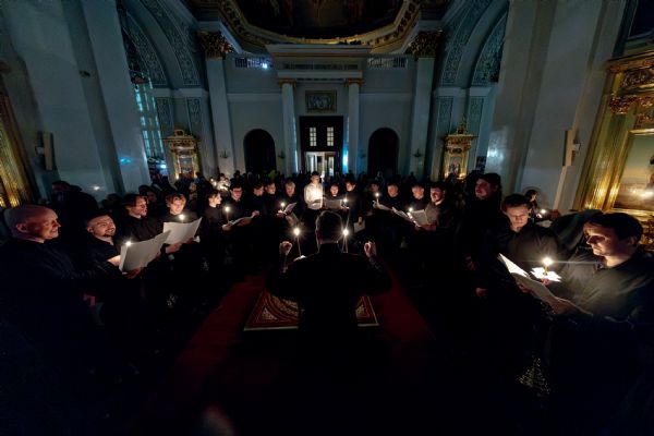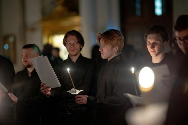 Песнопения исполнили архиерейский мужской хор под управлением Алексея Федотова и архиерейский смешанный хор под управлением Марины Литвиненко.