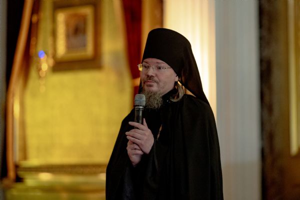 По окончании повечерия со словом к верующим обратился насельник монастыря иеромонах Гермоген (Рубан).