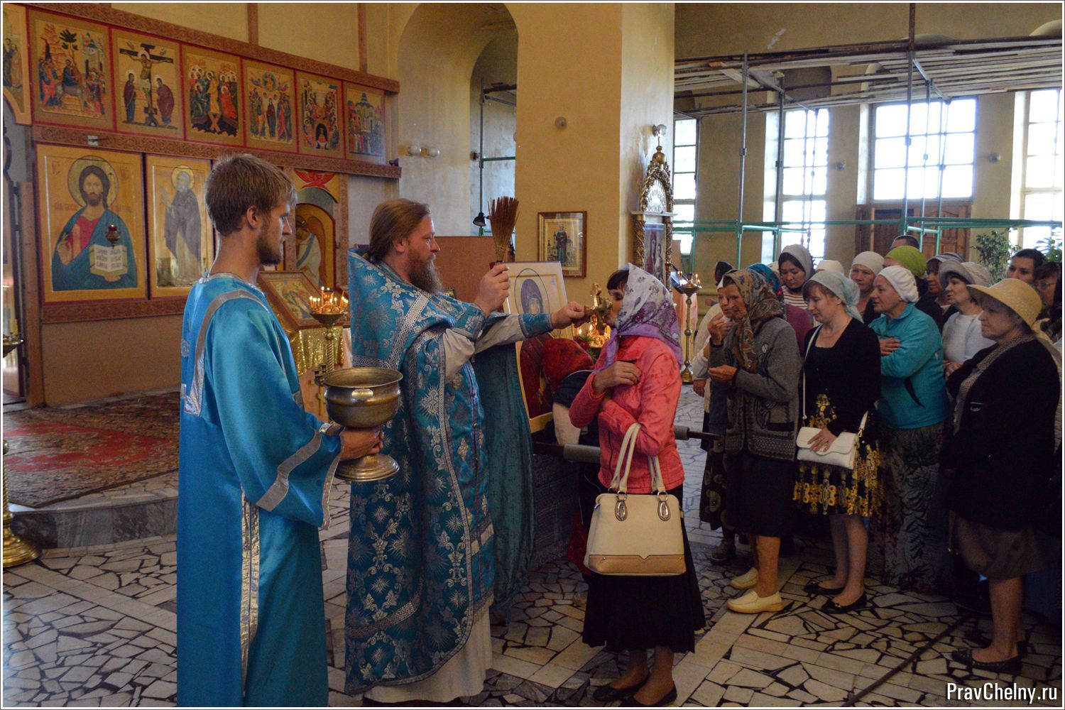 Дойдя до места назначения, участники крестного хода вместе с духовенством благоговейно прочли акафист перед Смоленской иконой, после чего настоятель Богоявленского храма обратился к верующим с проповедью, в которой поздравил всех с праздником и напомнил, что вся жизнь христианская подобна крестному ходу, в котором неизбежно встречаются трудности, но христианину нужно продолжать идти этим спасительным путем по слову Господа: «Возьми крест свой и следуй за Мной».