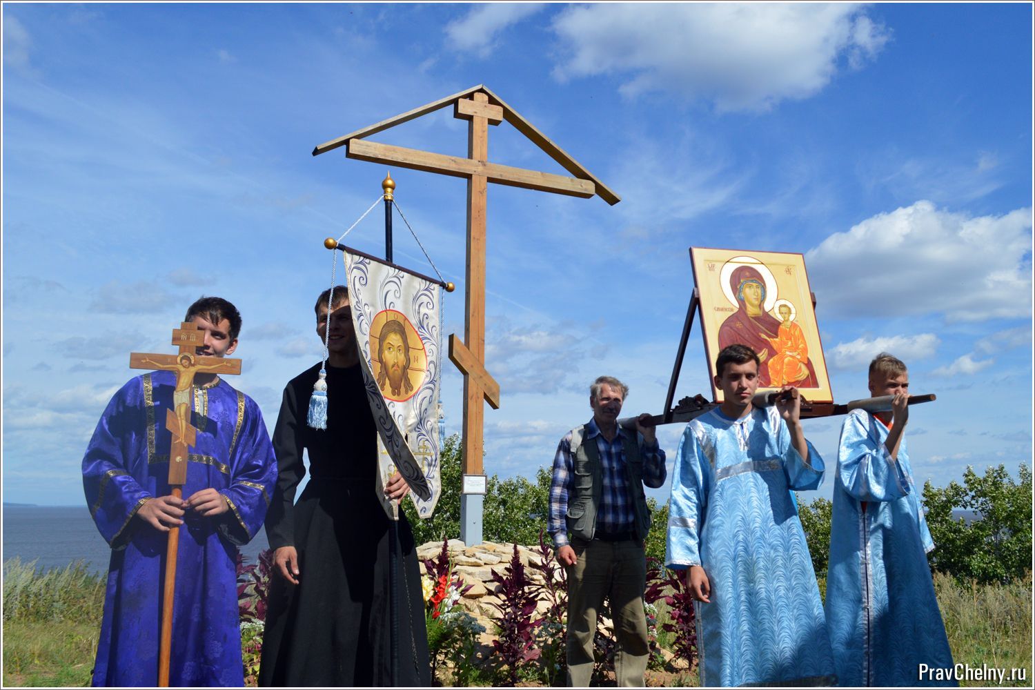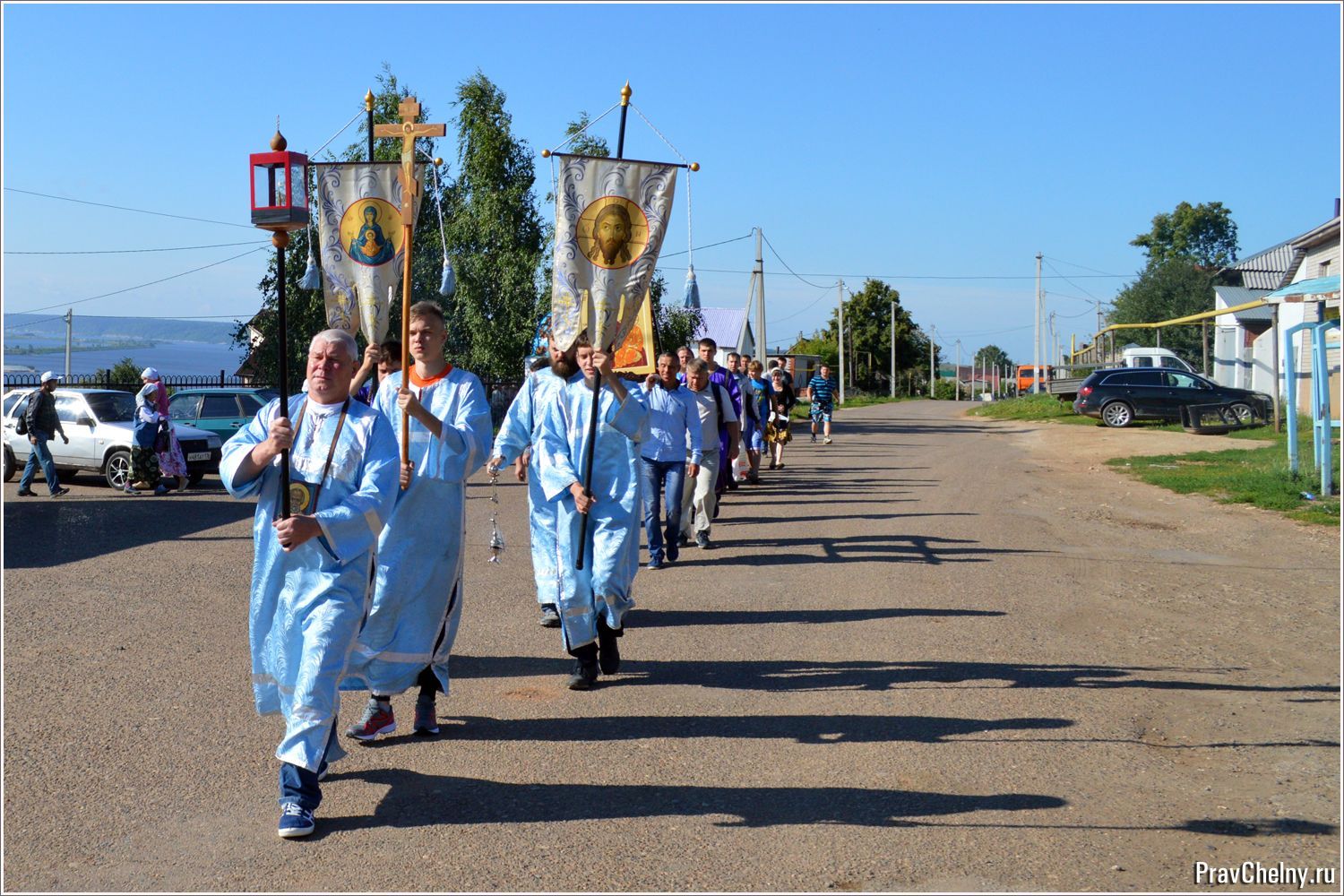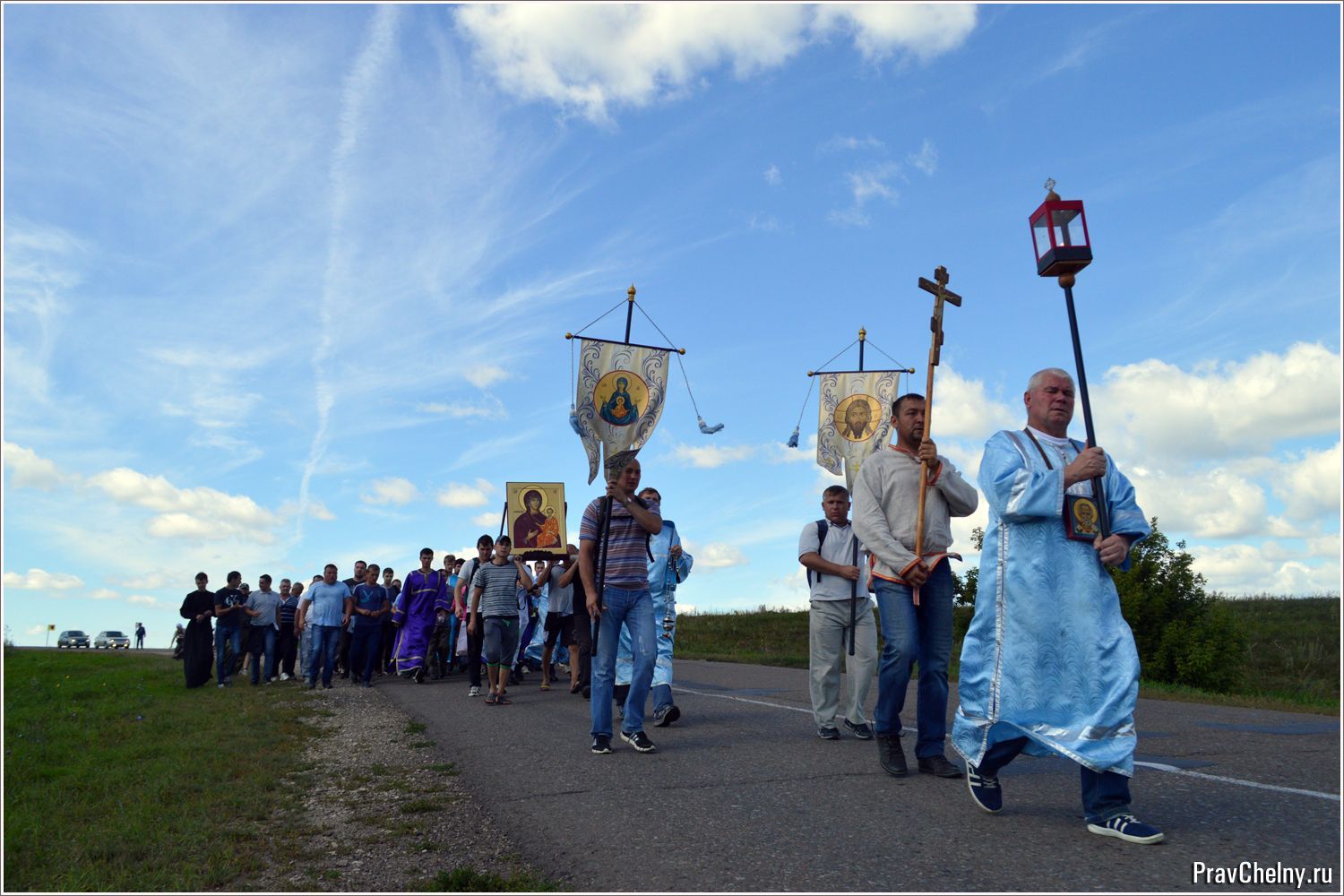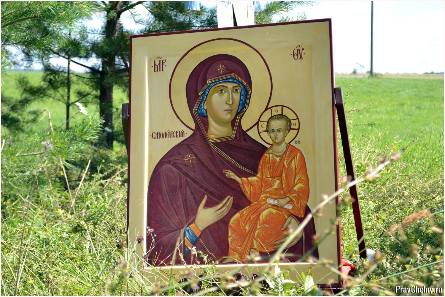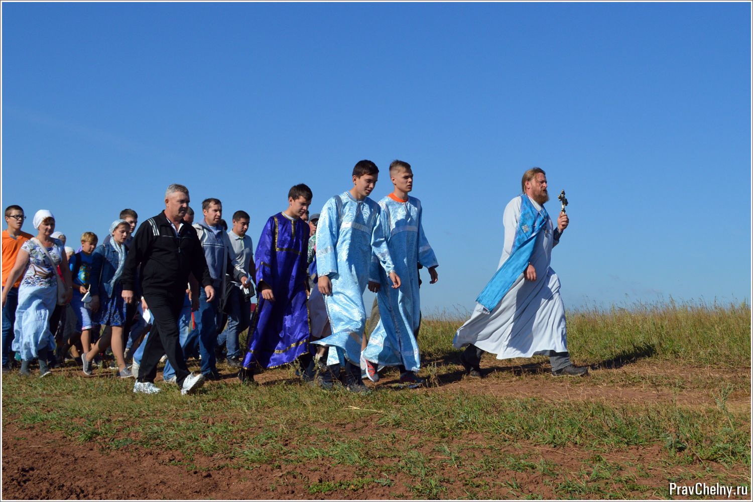 За шесть часов пути верующие с несмолкаемым молитвенным пением прошли к месту взорванного в 80-х годах прошлого века Смоленского храма села Икское Устье, где ныне строится церковь во имя мученика Уара. Возглавил шествие с празднуемой иконой Девы Марии настоятель менделеевского Богоявленского храма протоиерей Алексий Загуменнов.