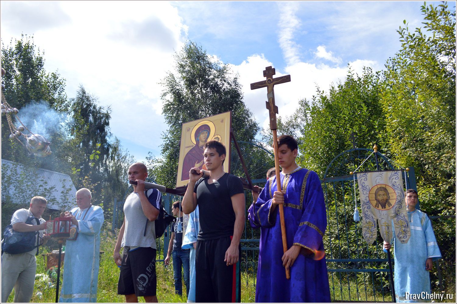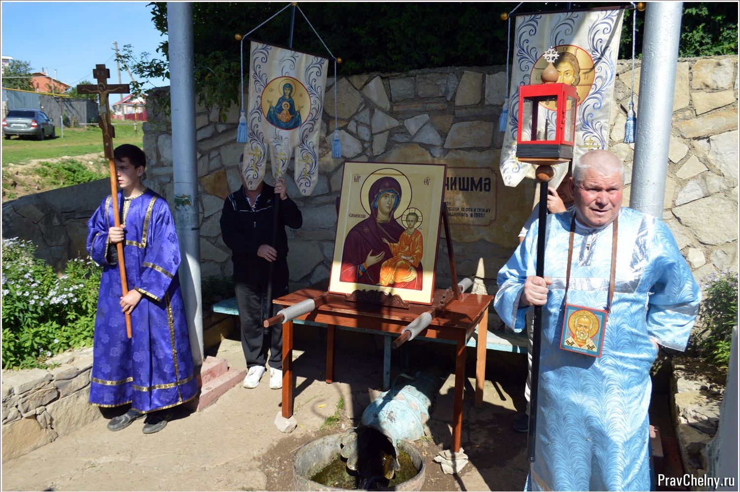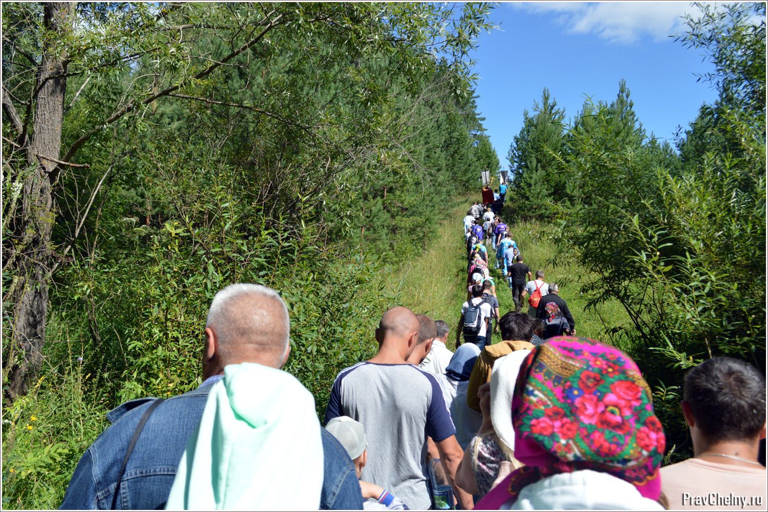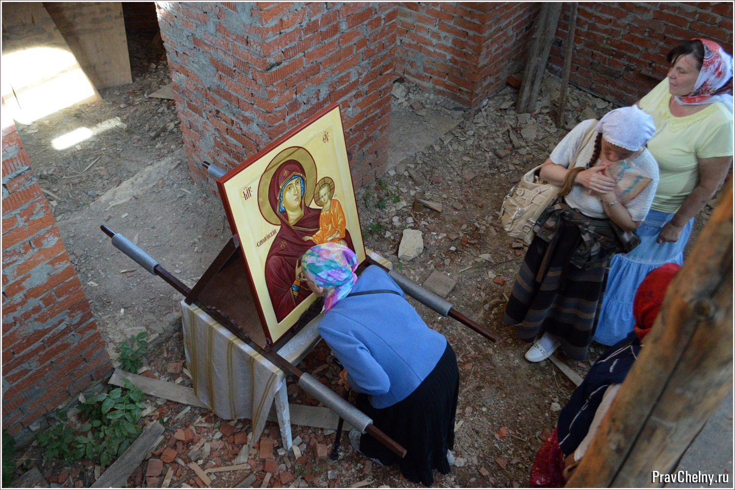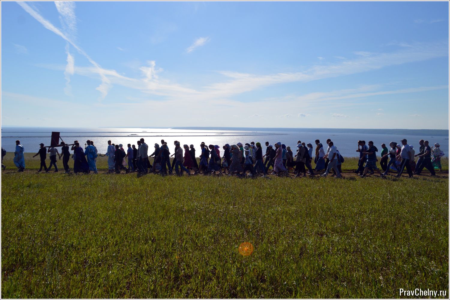 За шесть часов пути верующие с несмолкаемым молитвенным пением прошли к месту взорванного в 80-х годах прошлого века Смоленского храма села Икское Устье, где ныне строится церковь во имя мученика Уара. Возглавил шествие с празднуемой иконой Девы Марии настоятель менделеевского Богоявленского храма протоиерей Алексий Загуменнов.