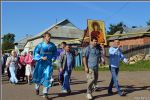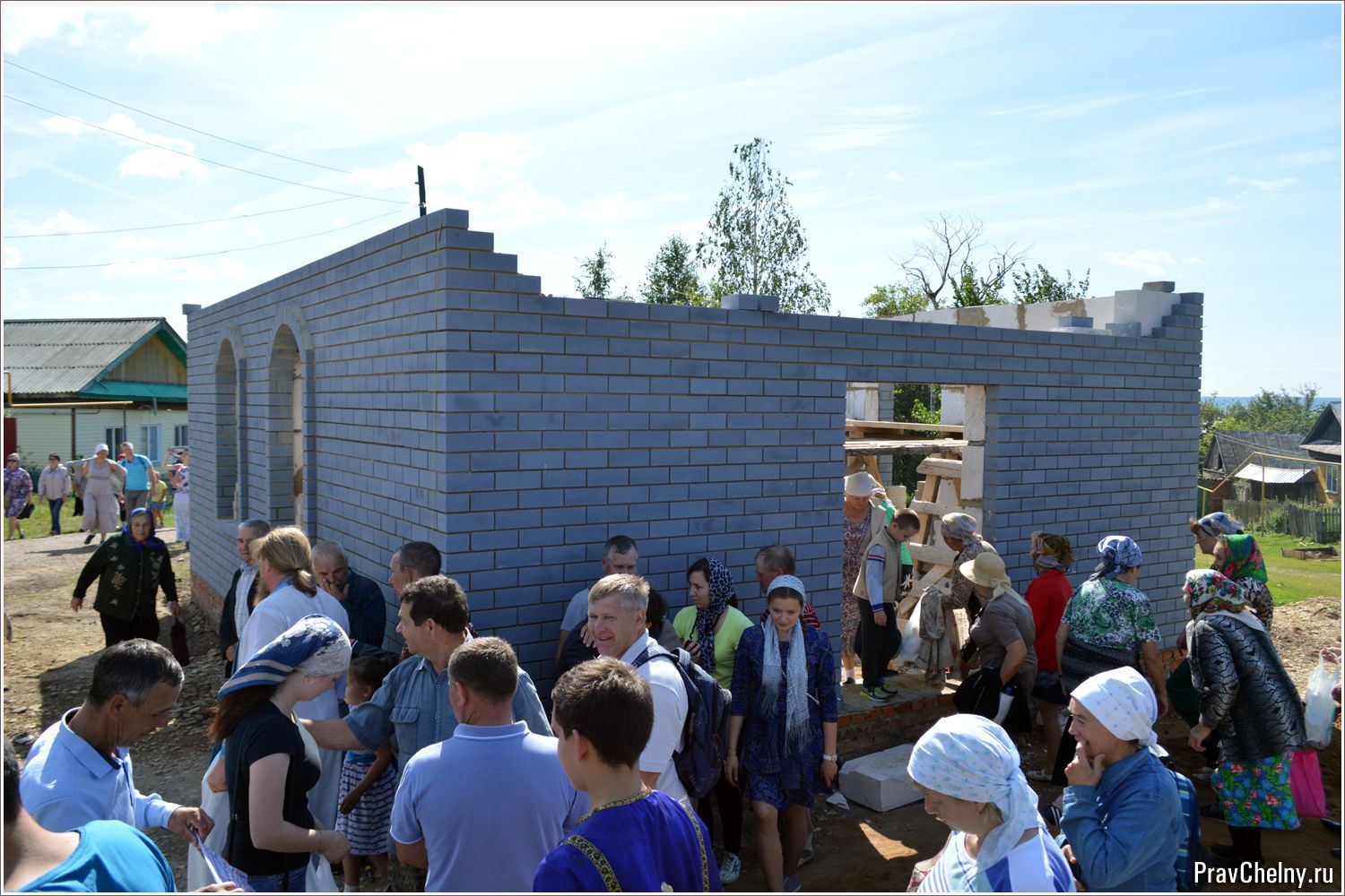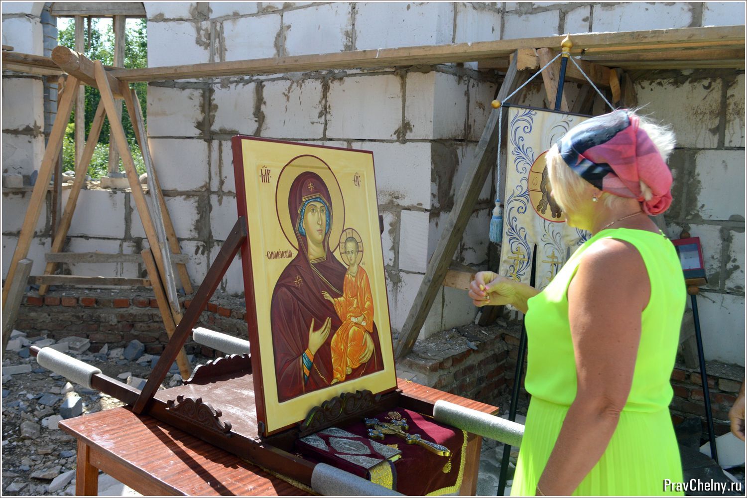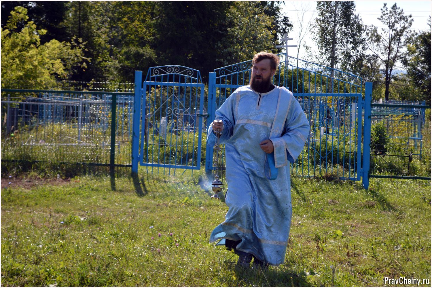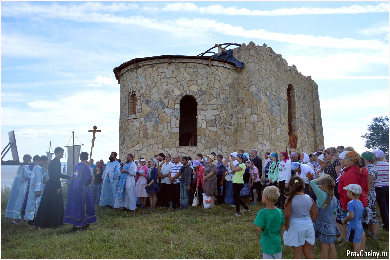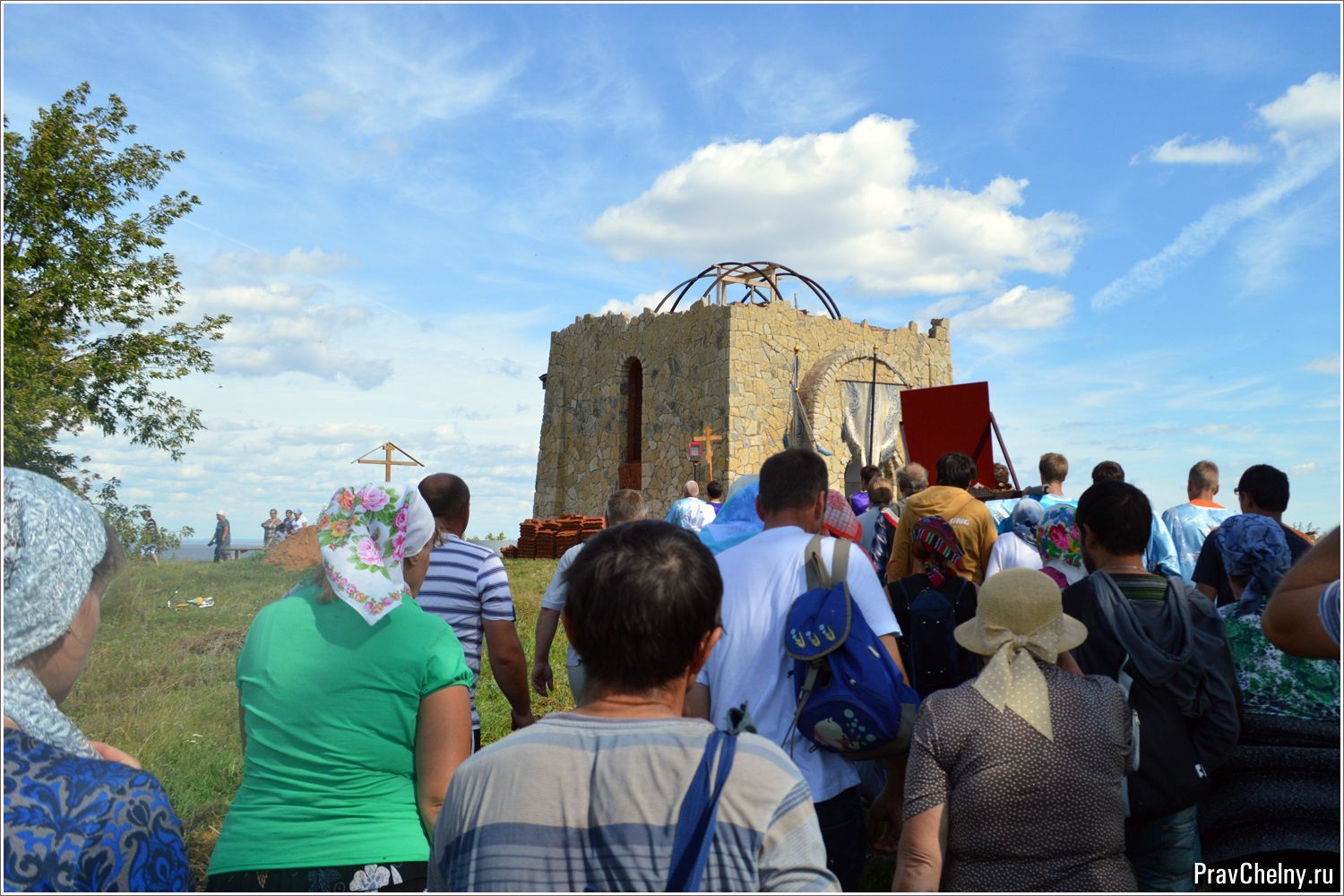 За шесть часов пути верующие с несмолкаемым молитвенным пением прошли к месту взорванного в 80-х годах прошлого века Смоленского храма села Икское Устье, где ныне строится церковь во имя мученика Уара. Возглавил шествие с празднуемой иконой Девы Марии настоятель менделеевского Богоявленского храма протоиерей Алексий Загуменнов.