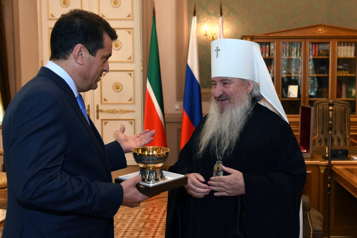 Ильсур Метшин поприветствовал митрополита Феофана, отметив значимость деятельности по укреплению Православия, дружбы между представителями разных вероисповеданий в Татарстане.