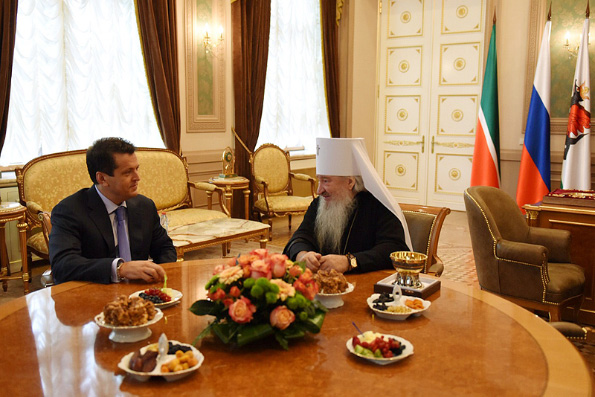 25 августа в столичной Ратуше состоялась встреча Мэра Казани Ильсура Метшина с митрополитом Казанским и Татарстанским Феофаном. На встрече также присутствовал руководитель Исполкома города Денис Калинкин.