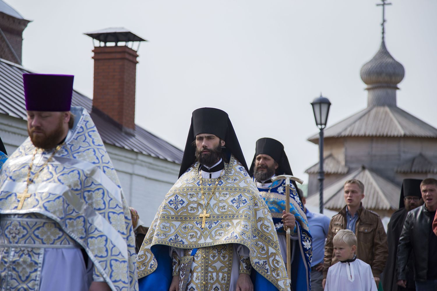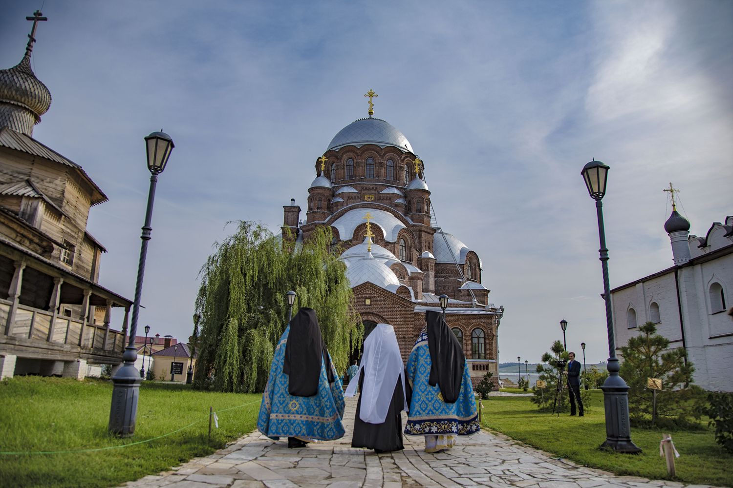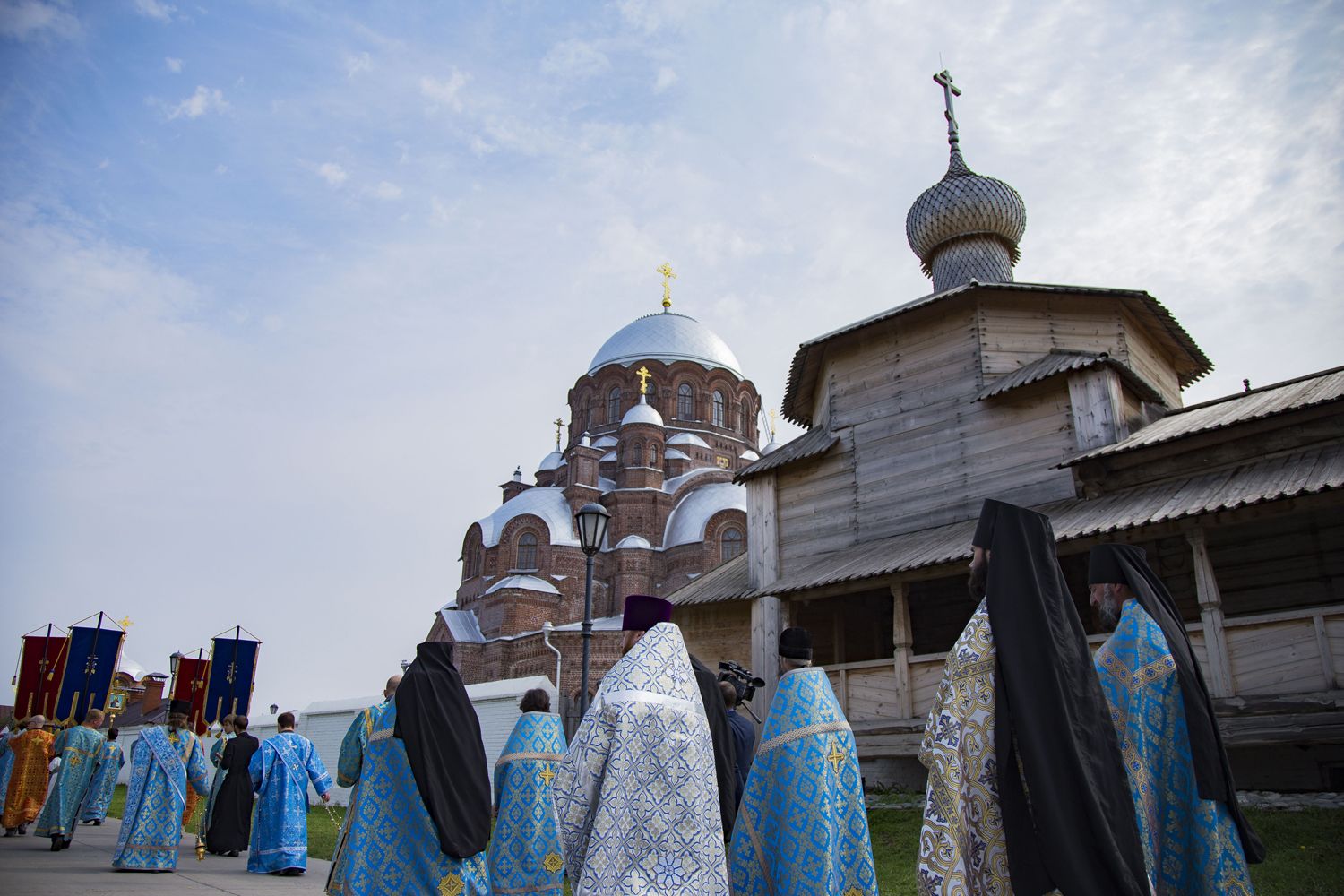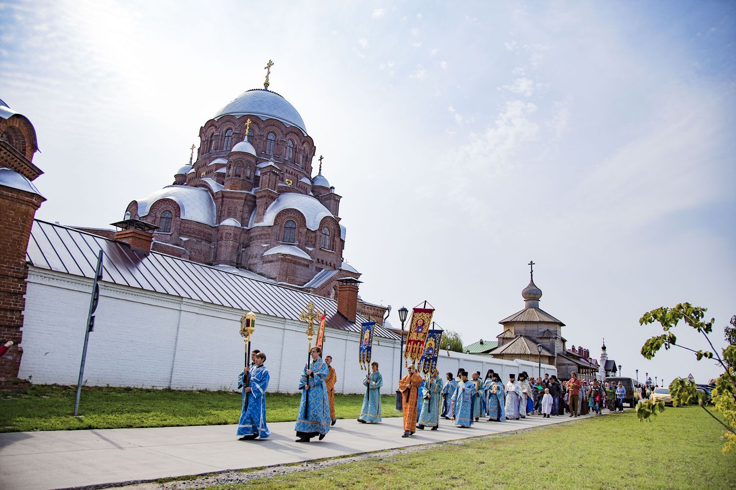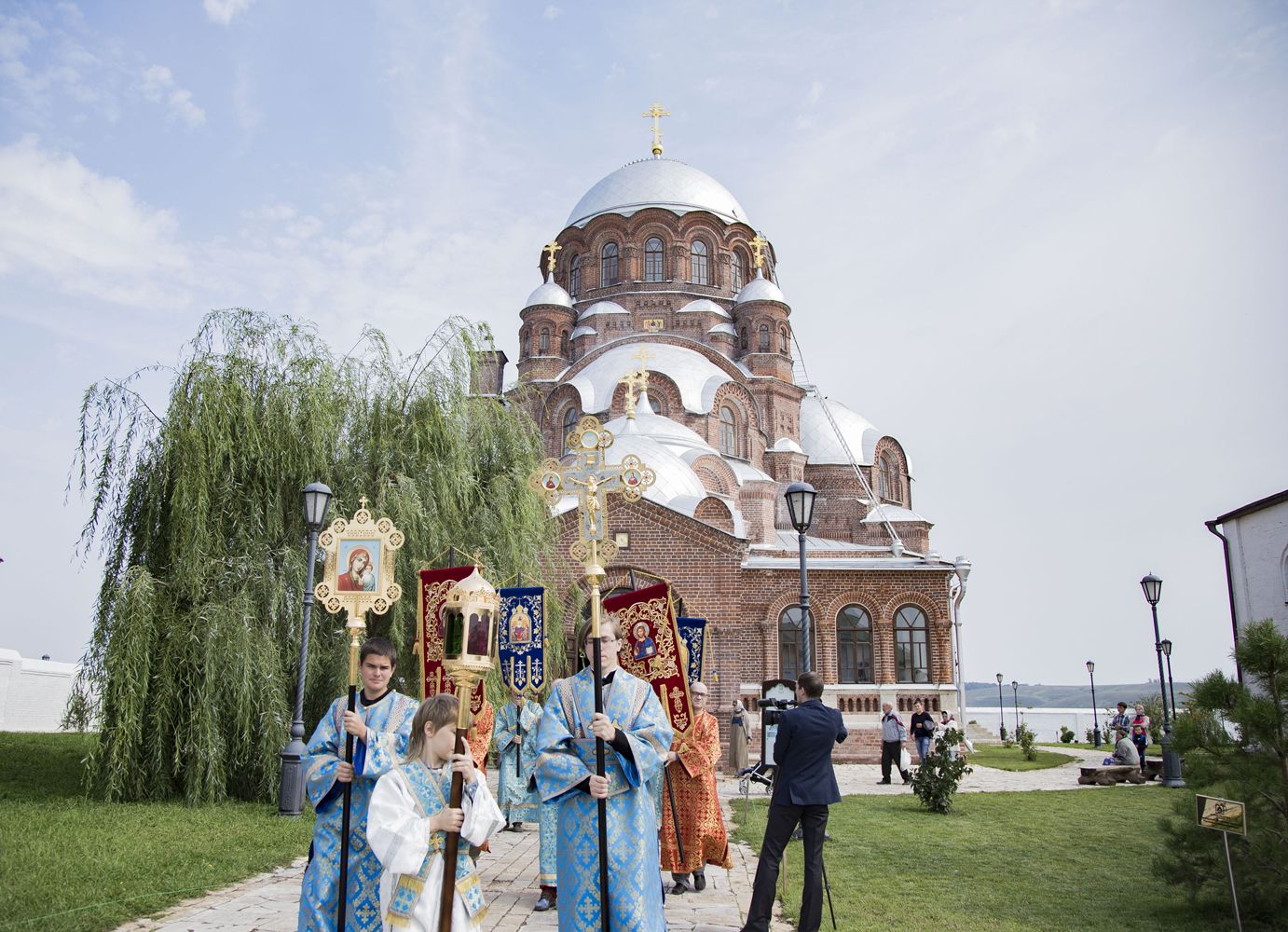 По окончании богослужения духовенство и верующие, по доброй традиции, прошли по улочкам Свияжска крестным ходом с пением молитвословий Пресвятой Богородице, останавливаясь возле храмов, взорванных в годы гонений.