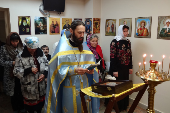 Праздничные богослужения совершил настоятель Свято-Введенского Кизического монастыря города Казани игумен Пимен (Ивентьев). В общей молитве приняли участие пациенты и сотрудники лечебного учреждения. Многие из молившихся причастились Святых Христовых Таин. По окончании литургии был отслужен молебен с чтением акафиста Богородице, а также совершено помазание верующих освященным елеем из лампады от чудотворной иконы «Всецарица», находящейся в обители Ватопед на Святой Горе Афон.