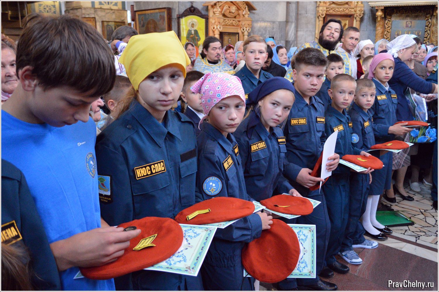 Уже зарекомендовавшие себя на сборах и сдавшие необходимые зачёты Ульяна Бражкина, Полина Кузнецова, Дарья Волкова, Екатерина Бернатус, Юлия Рыжова, Никита Малыхин, Богдан Высоцкий, Михаил Киреев, Анастасия Серова и Виктория Жвакина получили в этот день звание «Юный спасатель», соответствующую нашивку и оранжевый берет. Дети принесли присягу на служение Богу, Отечеству и людям, а благочинный Закамского региона протоиерей Андрей Дубровин вручил им знаки отличия. Юные спасатели дали торжественное обещание соблюдать обычаи дедов и отцов, почитать родителей, уважать старших и защищать младших.