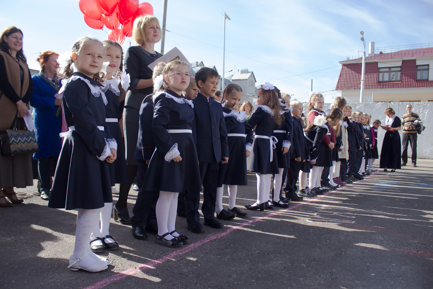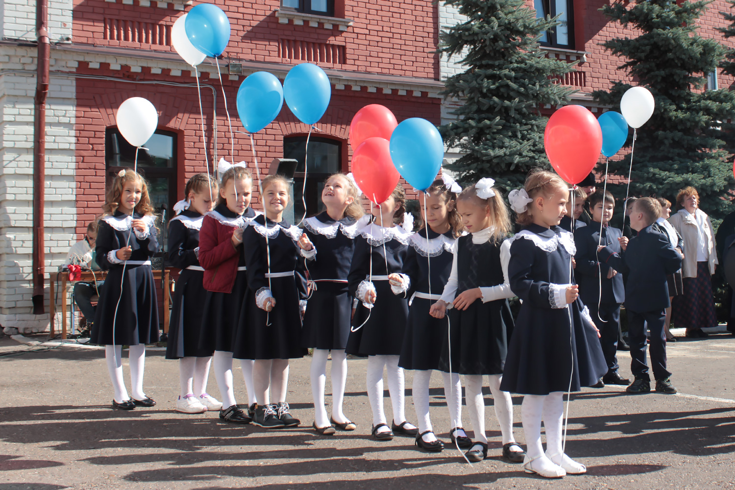 Торжество продолжилось поздравительными словами завуча, преподавателей и яркими выступлениями детей. Главными героями праздника были, конечно, первоклассники. Малыши с волнением и трепетом в сердце прочитали стихи и исполнили песни. Старшие воспитанники — ученики 3-го класса — обратились к младшим со словами напутствия, после чего все вместе исполнили школьную песню на русском и татарском языках.