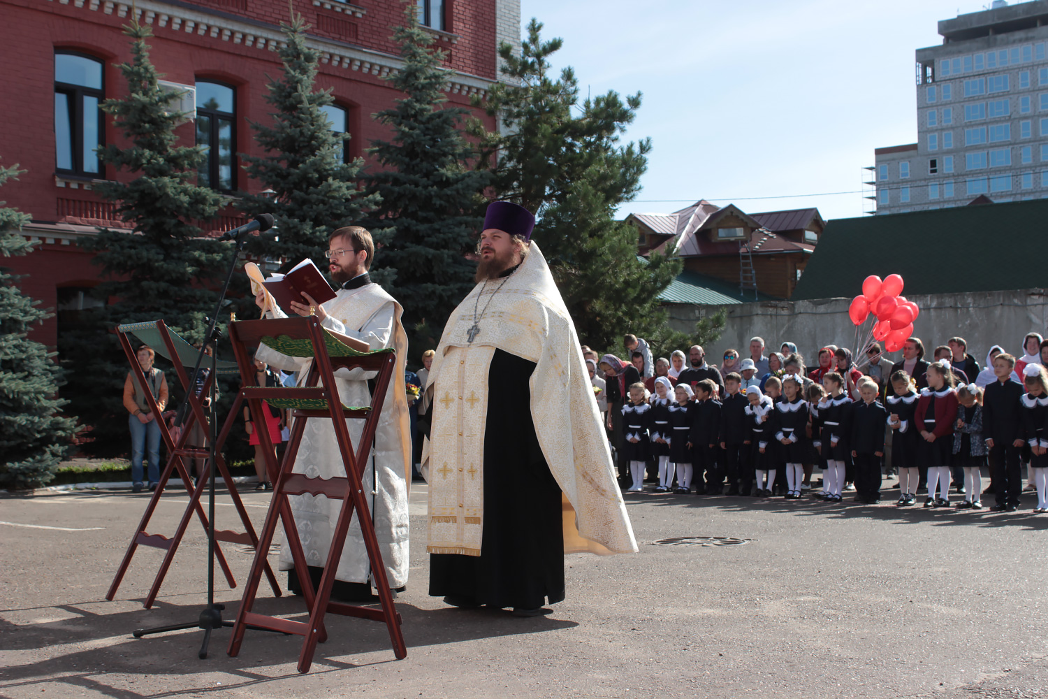 Перед торжественной линейкой, посвященной Дню знаний, был отслужен молебен на начало учебного года, который возглавил директор и духовник гимназии протоиерей Алексей Чубаков. После молитвы он обратился к ученикам, педагогам и родителям со словами поздравления и наставления.
