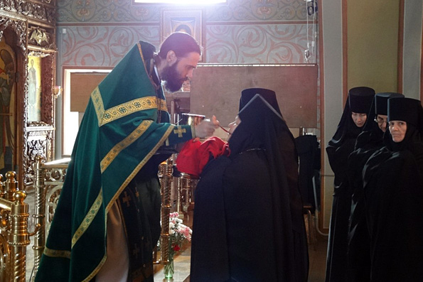 Также игумен поприветствовал настоятельницу святой обители игумению Сергию, отмечавшую в этот день свое тезоименитство, и преподнес ей в дар образ святителя Казанского Гурия. Отец Пимен отметил, что «большая радость — подвизаться на том месте, где жил и мученически скончался небесный покровитель».