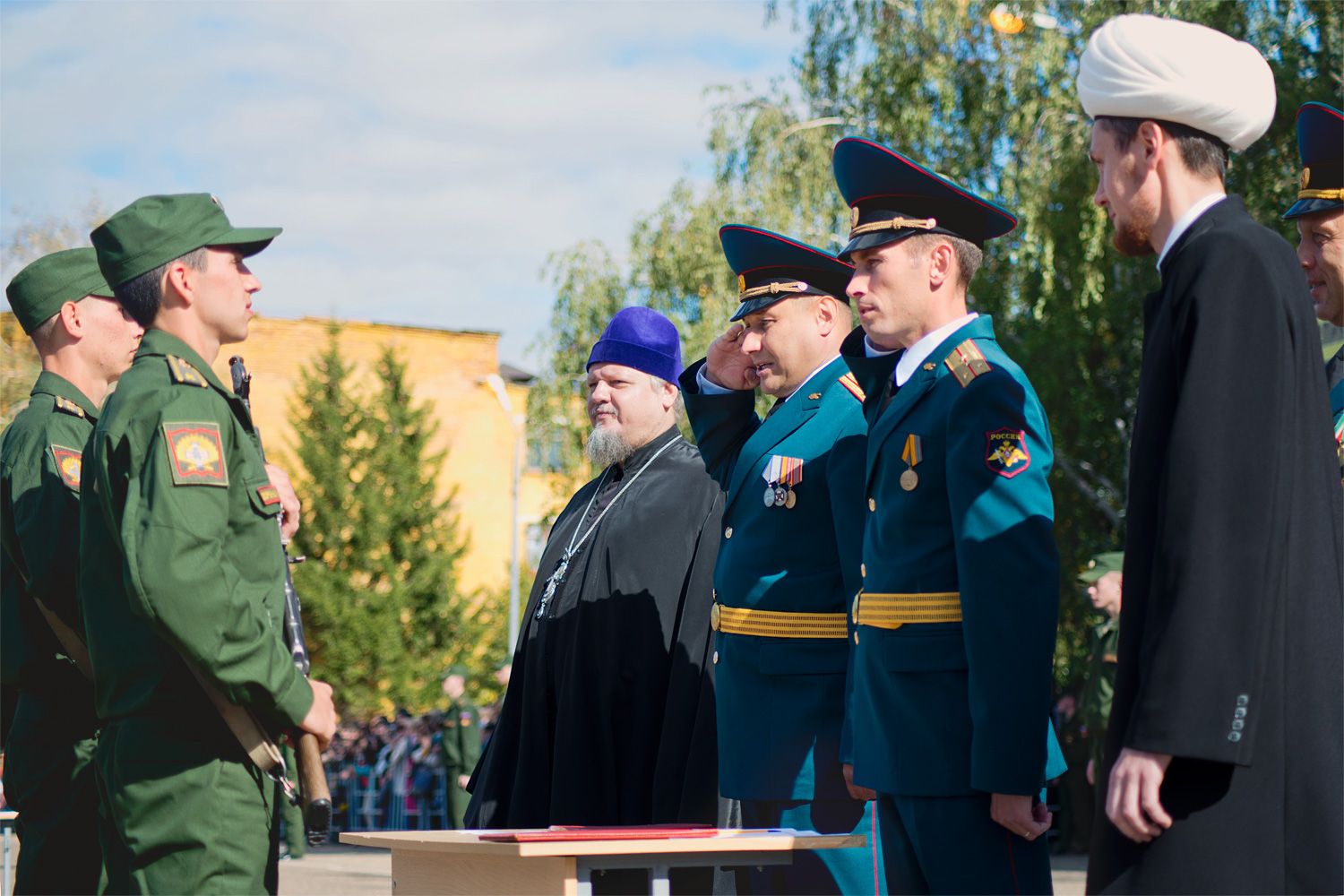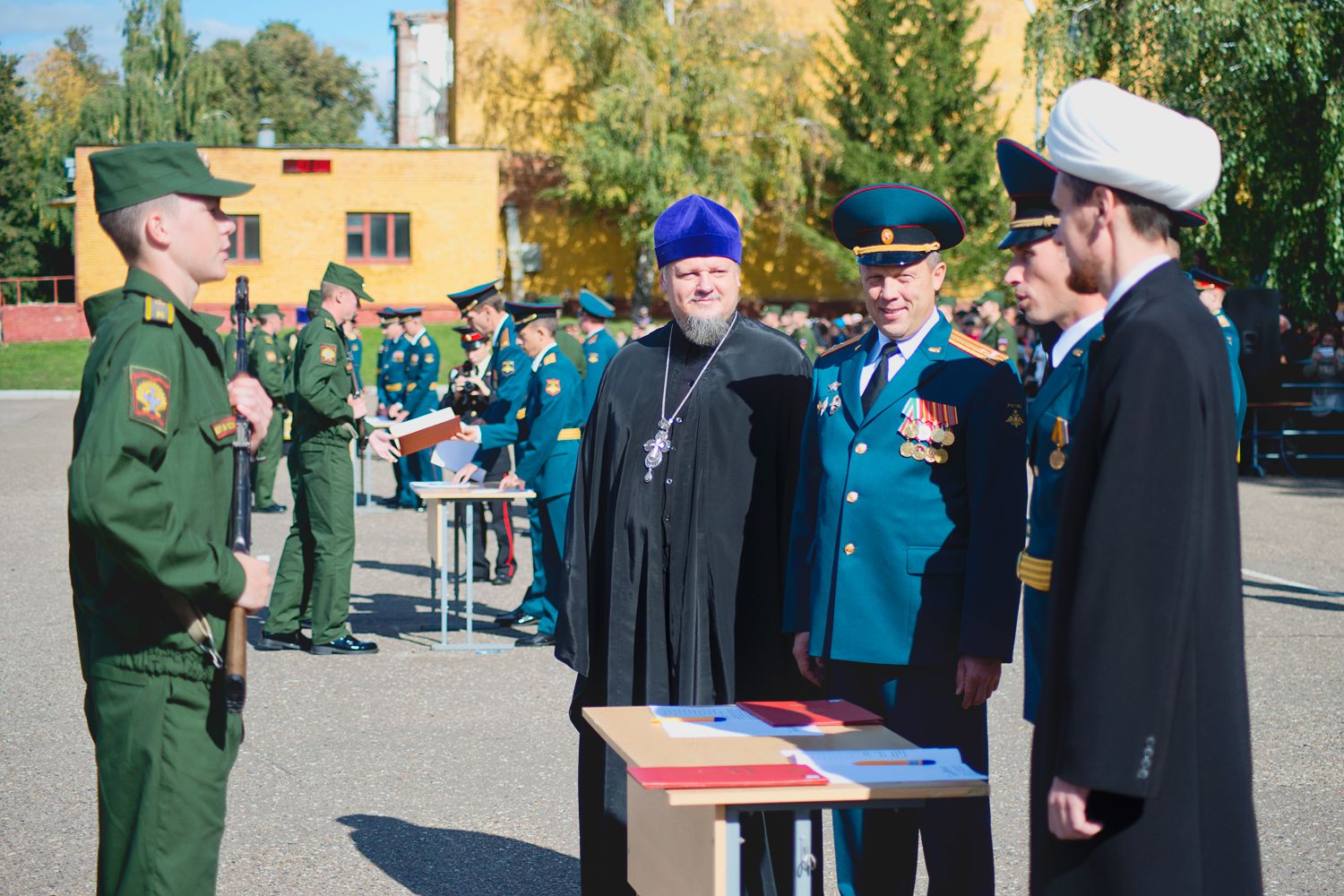 Поздравив руководителей и курсантов Казанского танкового училища с наступающим Днем танкиста, секретарь Казанской епархии обратился к первокурсникам. Он отметил, что принятие присяги включает их в великую Российскую армию. Священник пожелал всем будущим танкистам в годы обучения в училище «овладевать с честью и достоинством армейской воинской наукой».
