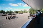 Мероприятие продолжилось музыкальными поздравлениями и выступлением духового оркестра танкового училища. Завершилась церемония торжественным маршем.