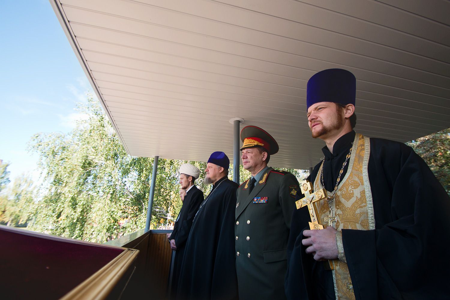 В торжественном мероприятии приняли участие генерал-майор Владимир Майстренко, заместитель премьер-министра Республики Татарстан Василь Шайхразиев, Заместитель Председателя Госсовета Татарстана Юрий Камалтынов, руководитель отдела пропаганды (дагвата) Духовного управления мусульман РТ Нияз хазрат Сабиров и имам мечети Тынычлык Рушан хазрат Сатрудинов. Казанскую епархию представляли секретарь епархии протоиерей Владимир Самойленко и сотрудник епархиального отдела по взаимодействию с Вооруженными Силами иерей Виталий Беляев.