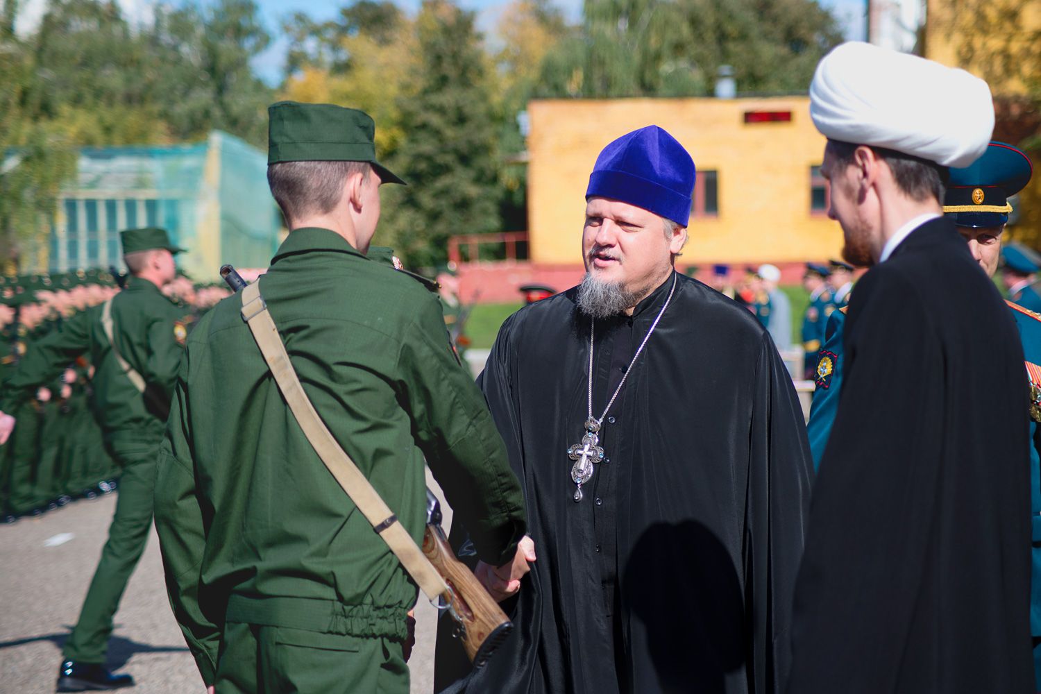 Отец Владимир указал на необходимость с терпением преодолевать предстоящие трудности, памятуя, что за спинами воинов «их родные и близкие, их семьи, великая Родина, которой необходимо служить до конца». В заключение священнослужитель пожелал курсантам помощи Божией в ратном служении.