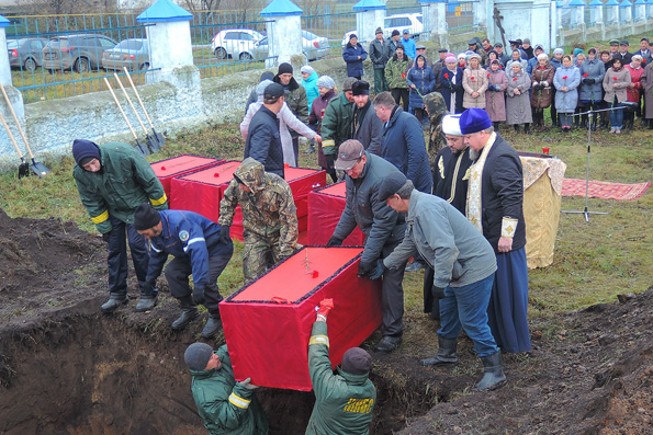 — Видно, что этих людей в подвале хоронили пластами — положили ряд людей, засыпали землей, и дальше следующий слой людей и земли. Что это за люди, неизвестно. В черепах нет следов от пулевых ранений. Районные власти обратились к правящему архиерею, который и благословил захоронить останки, — сообщил протоиерей Владимир Самойленко.