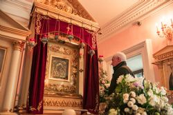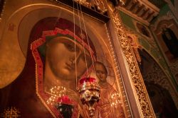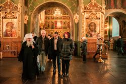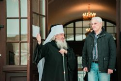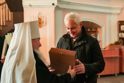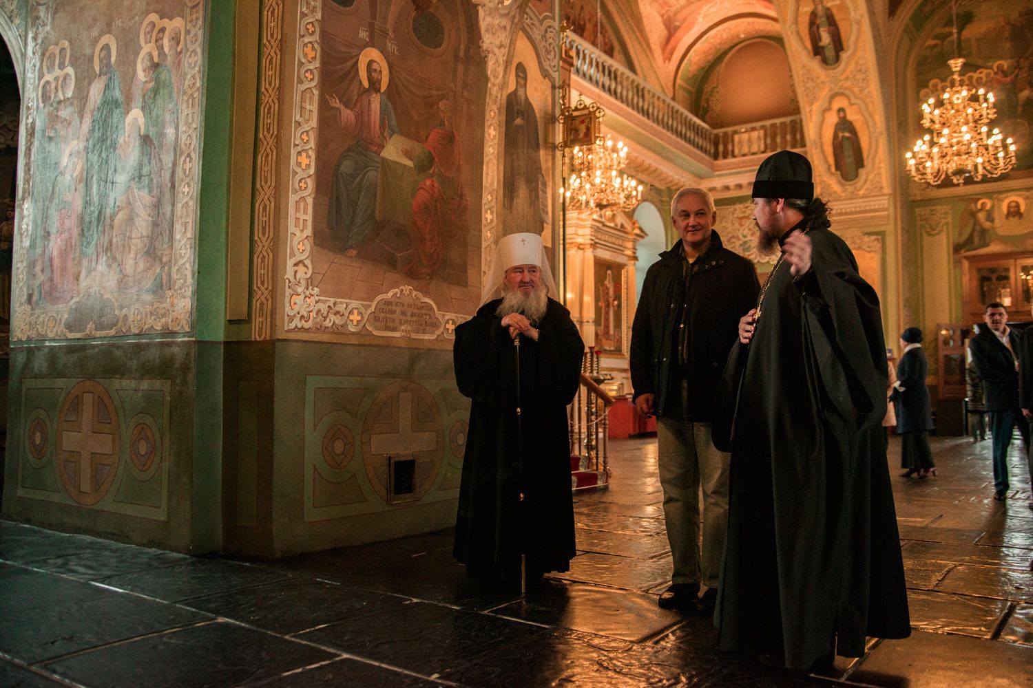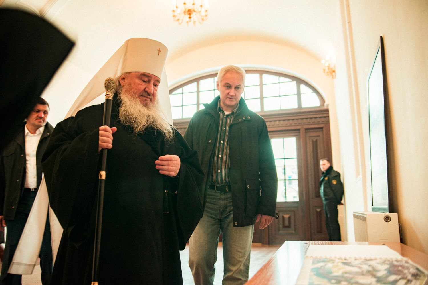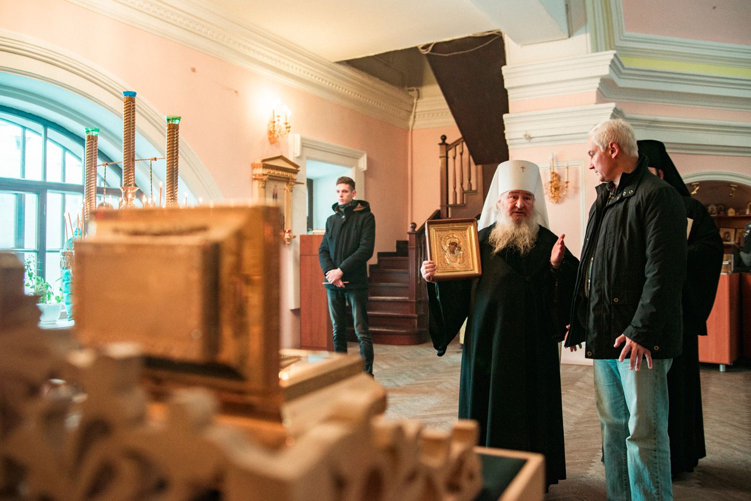 В Крестовоздвиженском соборе обители Андрей Белоусов поклонился чудотворному списку Казанской иконы Божией Матери. На молитвенную память глава митрополии вручил Андрею Рэмовичу Казанскую икону Богородицы и книгу об этой великой святыне Православия.