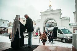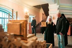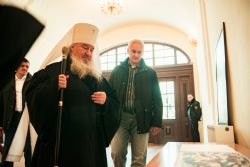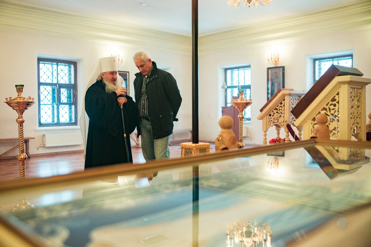 Встречая высокого гостя, архипастырь провел для него экскурсию по обители, рассказал об истории и современной жизни монастыря. Участники встречи посетили место обретения Казанской иконы Божией Матери, где будет воссоздан собор. Владыка Феофан ознакомил помощника главы государства с проектом по восстановлению Казанского собора и ответил на его вопросы.