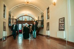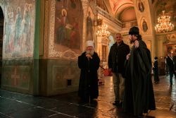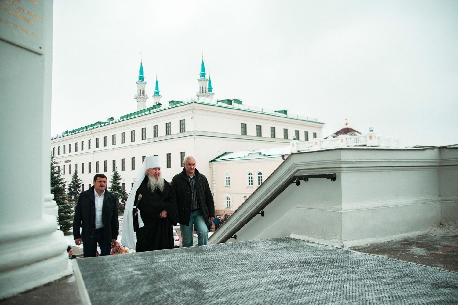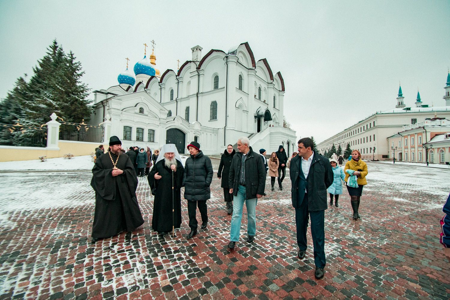 В Благовещенском соборе высоких гостей встретила директор музея-заповедника «Казанский кремль» Зиля Валеева и настоятель храма иеромонах Гурий (Ананьев). В рамках ознакомления со святынями и внутренним убранством собора А.Р. Белоусову было рассказано об истории древнейшего храма Казани.