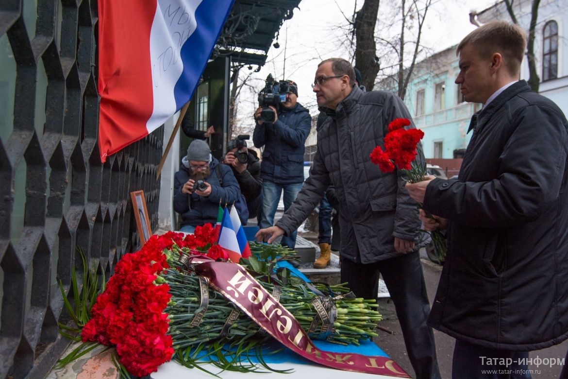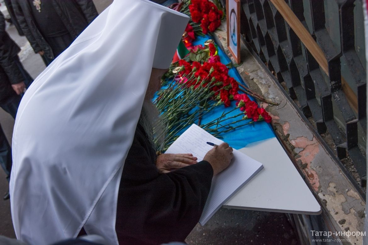 Помимо горожан, журналистов, возложить цветы к мемориалу пришли заместитель руководителя Аппарата Президента РТ по вопросам внутренней политики Александр Терентьев, руководитель Аппарата исполкома Казани Игорь Сивов, помощник Президента РТ Наталия Фишман, митрополит Казанский и Татарстанский Феофан, ректор Российского исламского университета Рафик Мухаметшин и другие, сообщает ИА «Татар-информ».