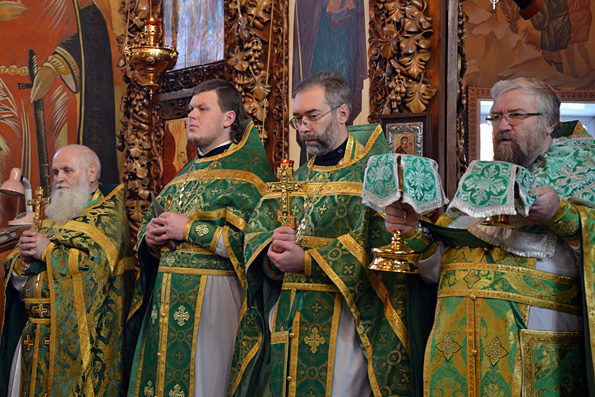 После богослужения всех пригласили в трапезную храма, где прошел маленький концерт, организованный силами воскресной школы. Участники паломнического общества «Ветка Палестины» поздравили настоятеля храма протоиерея Олега Богданова с престольным праздником и вручили ему подарок — вазы для украшения храма. Одна из прихфожанок подарила настоятелю вышитую икону с редким сюжетом «Иосиф Обручник с Младенцем Христом», которую изготовила своими руками.
