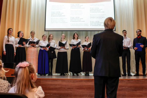 Концерт открылся выступлением старшего хора школы «Апостол», исполнившего церковные песнопения «Господь просвещение мое» и «Достойно есть». Затем ведущие рассказали присутствующим о непростом и праведном жизненном пути священномученика Кирилла, митрополита Казанского: его молодых годах, учении, личной семейной трагедии, самоотверженном служении во славу Господа. И необыкновенной силе духа, благодаря которой сформировалась его уникальная личность истинного подвижника и радетеля Церкви.