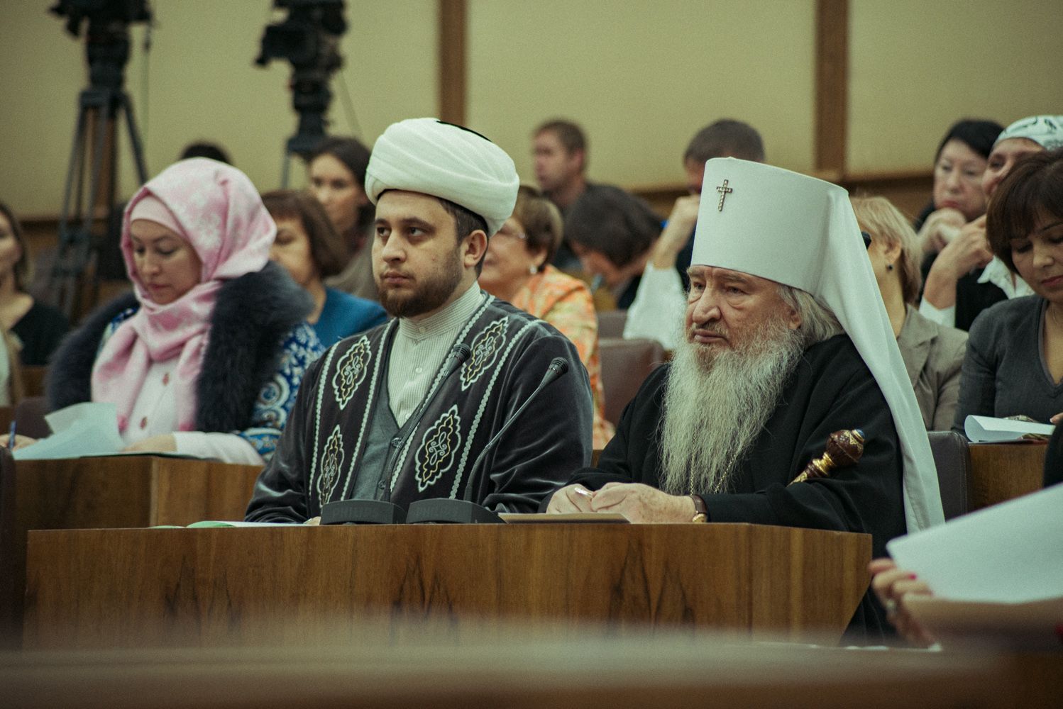 Религиозные общины республики представляли митрополит Казанский и Татарстанский Феофан, заместитель председателя Духовного управления мусульман РТ Рустам хазрат Хайруллин, настоятель казанского прихода Воздвижения Святого Креста Римско-Католической Церкви Уркеза Диогенес, главный раввин РТ Ицхак Горелик.