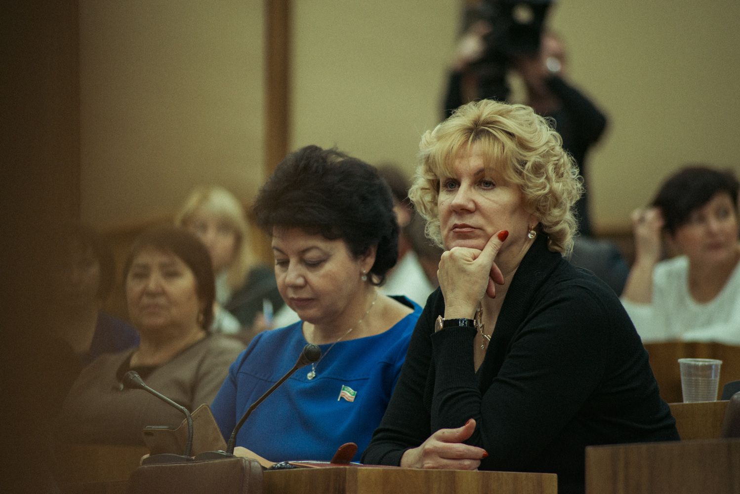 В президиуме находились председатель Комитета по социальной политике РТ Светлана Захарова, заместитель председателя Госсовета РТ Татьяна Ларионова и заместитель председателя Госсовета РТ Римма Ратникова.