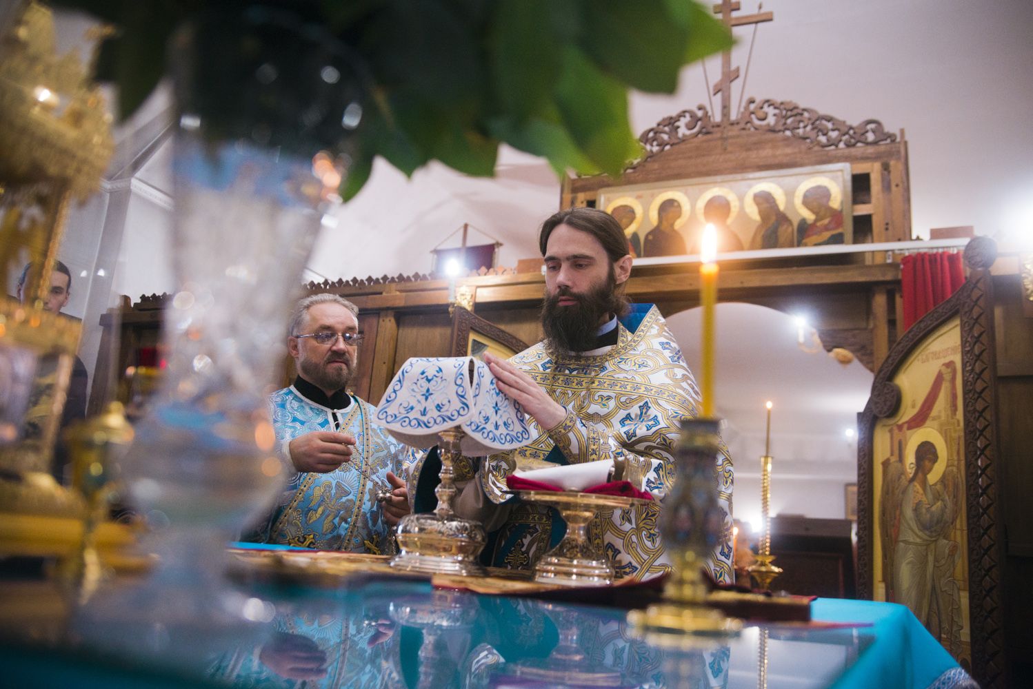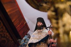 Его Высокопреподобию сослужили настоятель Варваринской церкви города Казани протоиерей Виталий Тимофеев, настоятель Петропавловского собора города Казани протоиерей Сергий Титов, благочинный Зеленодольского округа протоиерей Святослав Мирганиев, настоятель храма святителя Николая Чудотворца города Зеленодольска иерей Кирилл Назаров, братия обители в священном сане.