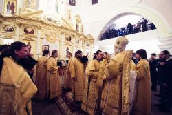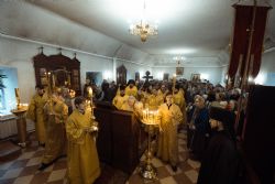 В канун воскресного дня глава Татарстанской митрополии возглавил всенощное бдение в Крестовоздвиженском соборе Казанско-Богородицкого монастыря. За богослужением Его Высокопреосвященству сослужили благочинный обители иеромонах Андрей (Сироткин) и братия монастыря. По завершении всенощного бдения владыка митрополит обратился к присутствующим со словом проповеди, поделившись впечатлениями от недавней поездки на Святую гору Афон.
