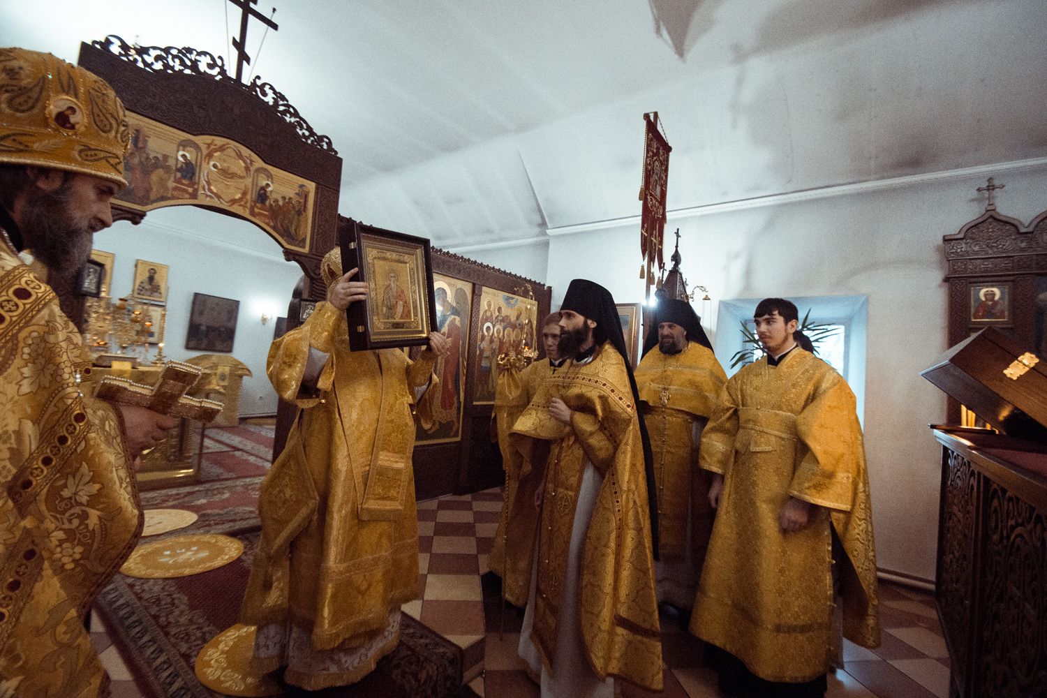 Поприветствовав владыку Феофана, игумен Пимен выразил правящему архиерею благодарность за разделенную радость молитвенного общения. Отметив, что назначение архиерея на Казанскую кафедру состоялось в год, «когда вся Полнота Русской Православной Церкви прославляет 1000-летие блаженной кончины Крестителя Руси — великого князя Владимира», от лица братии обители отец Пимен преподнес Его Высокопреосвященству икону равноапостольного князя.