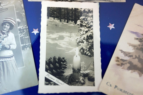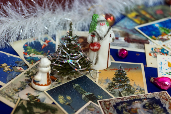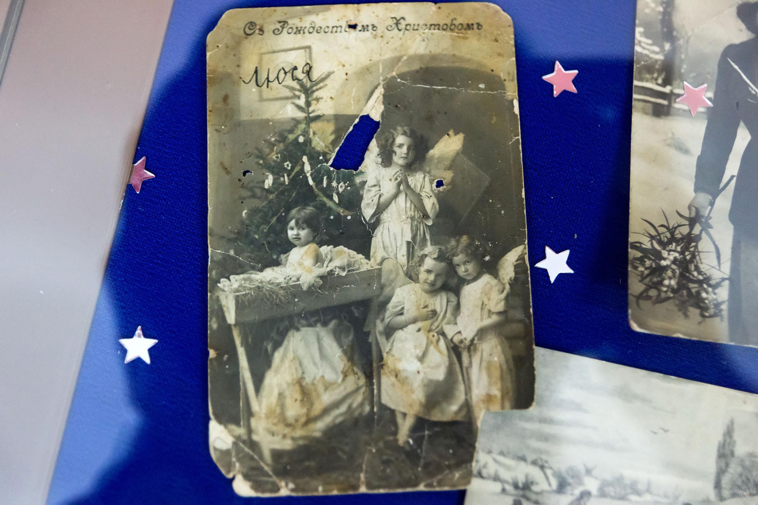 На выставке представлены поздравительные открытки за столетний период истории России. Посетители могут увидеть переизданные рождественские открытки начала XX века с изображениями библейских сюжетов, семейных традиций и обычаев того времени, заменившие их открытки с Дедом Морозом, Снегурочкой, снеговиком и лесными персонажами — новогодними атрибутами советского времени. Рядом с открытками прошлых лет — современные, выполненные на высоком уровне полиграфии, что не умаляет особого очарования старых рождественских и новогодних открыток, создающих праздничное настроение.