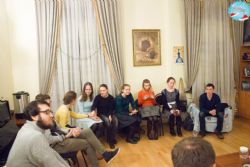 Программа первой встречи молодежного клуба «Азбука» продолжилась просмотром документального фильма Первого канала под названием «Рождество». После священнослужитель ответил на различные вопросы о подготовке к Рождеству Христову и Новому Году. Участники поделились своим мнением о фильме и мыслями, возникшими при его просмотре. А также обсудили следующую встречу.