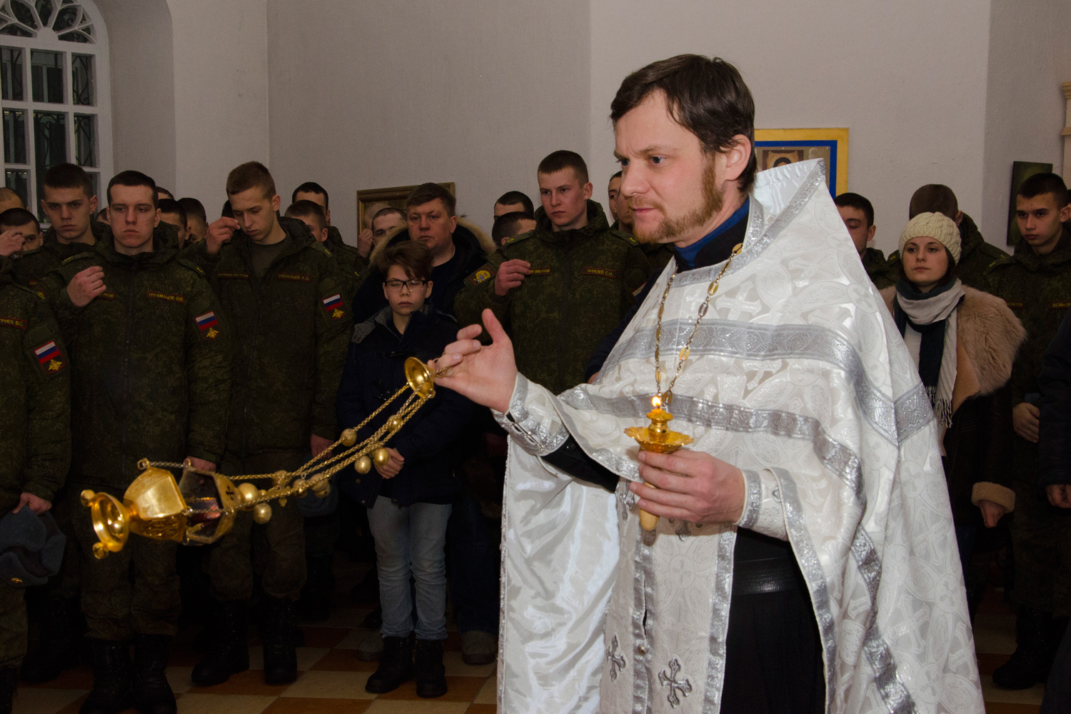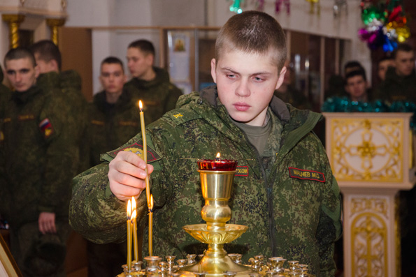 Духовным окормлением молодых военных уже много лет занимается заместитель руководителя отдела Казанской епархии по взаимодействию с вооруженными силами иерей Виталий Беляев, и участие в ночных богослужениях главных церковных праздников — Рождества Христова и Пасхи является традиционным для курсантов и военнослужащих. Отец Виталий, настоятель храма, построенного в начале XX века, пригласил своих подопечных разделить радость праздника, и в ночь на 7 января 86 курсантов и офицеров танкового училища приняли участие в Рождественской Божественной литургии.